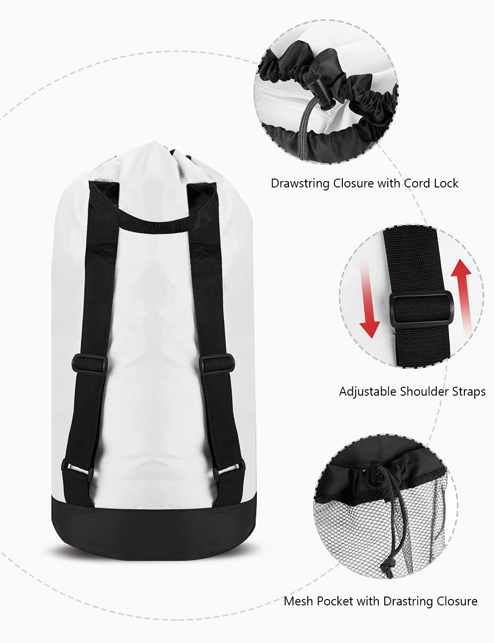 ADJUSTABLE AND WIDE SHOULDER STRAPS - Fully adjustable shoulder straps and torso length to fit a wide variety of people, which can be extended to 28.4" at the longest. With the width of 1.9", it provides maximum support to your shoulders, relieving your shoulders from heavy weight. More convenient and comfortable than holding a bulky laundry basket back and forth between home and laundromat.