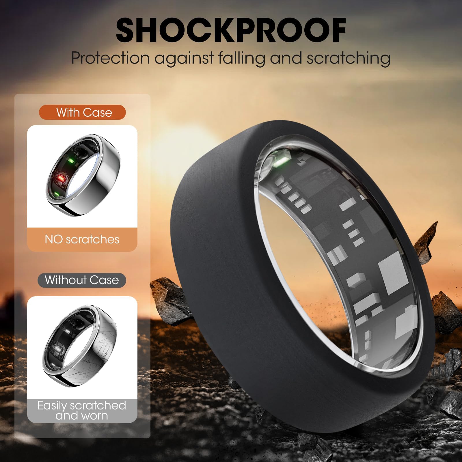 【Strong protection】Shock-proof and shatter-resistant, It can handle impacts and anti-shock bumper and greatly protect the smart ring accident drops, falls and scratches.