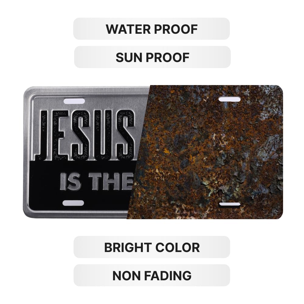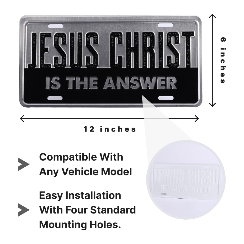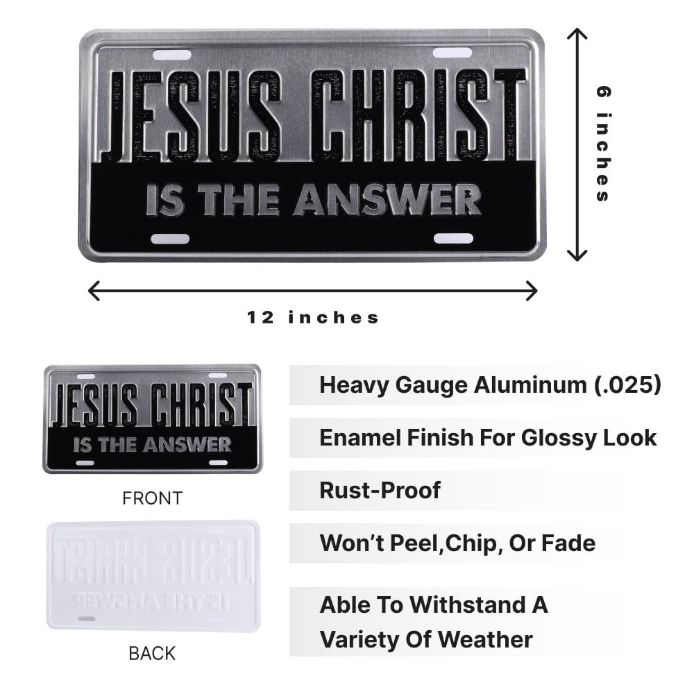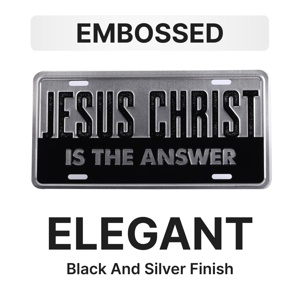 Embossed Design: This license plate features an embossed "Jesus is The Answer" design in black and silver, adding a bold, stylish touch to any vehicle. The raised lettering offers a quality look and feel that stands out on the road.