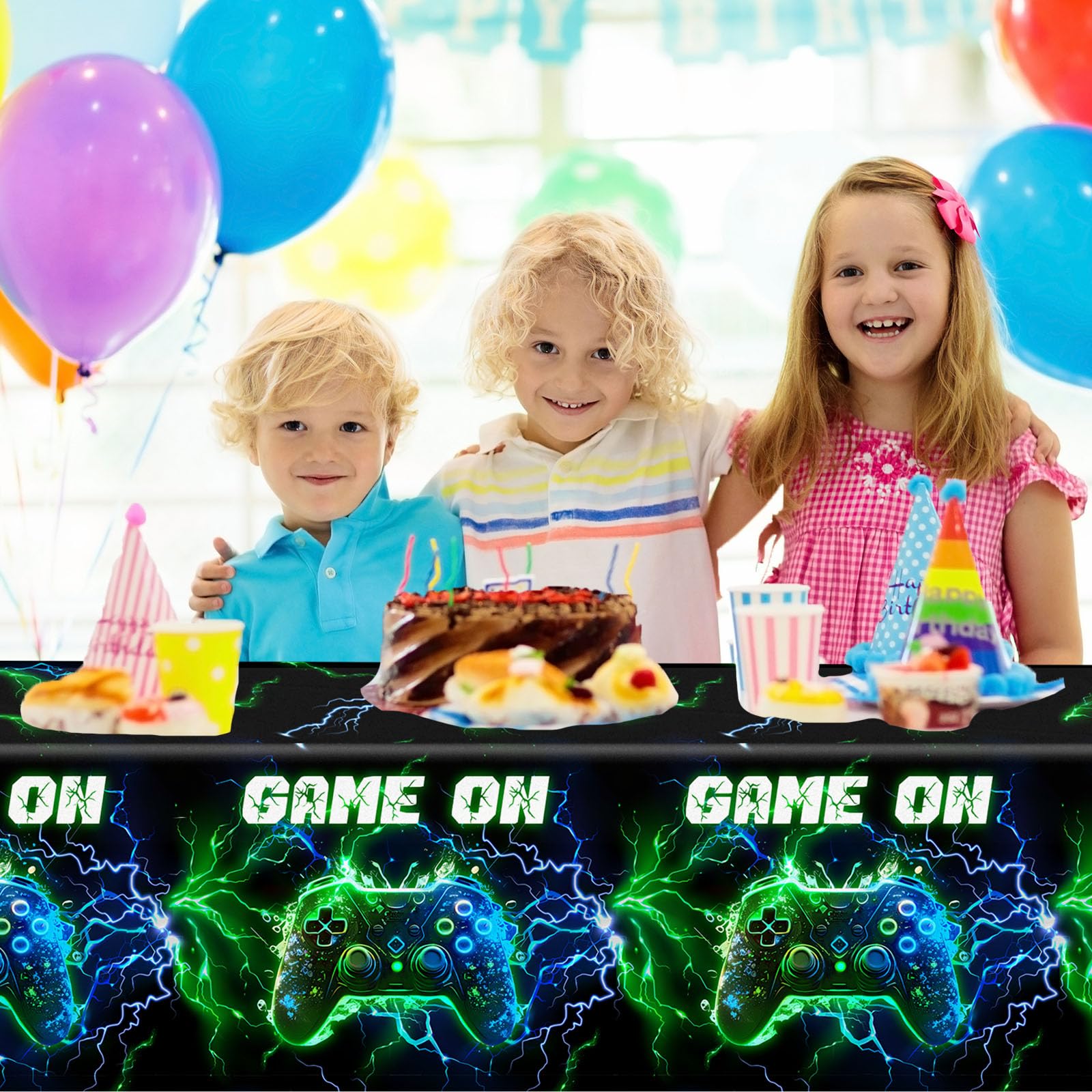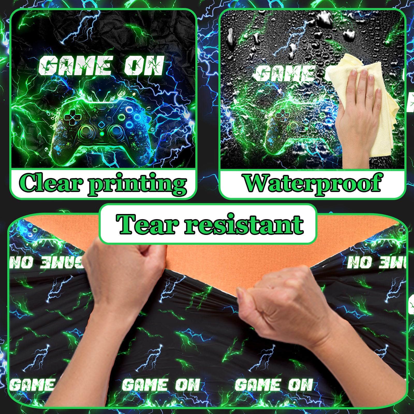 【VIDEO GAME TABLECLOTH】You will get 3pcs waterproof gamer party tablecloth,size 70.8x42.5inch.Sufficient quantity and size to meet most of your party table decorations