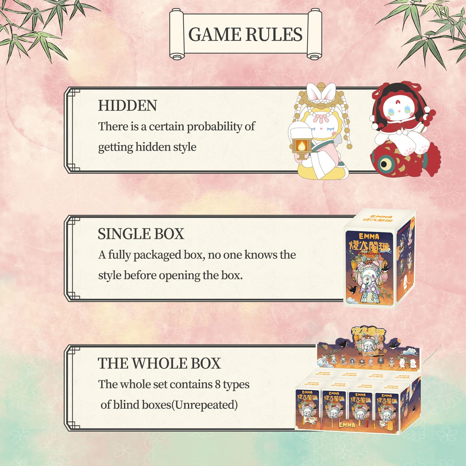 【EMMA】This series has 8 regular figures, 1 general hidden edition [Solicit Wealth]. 1 super hidden edition [Carp Lamp].