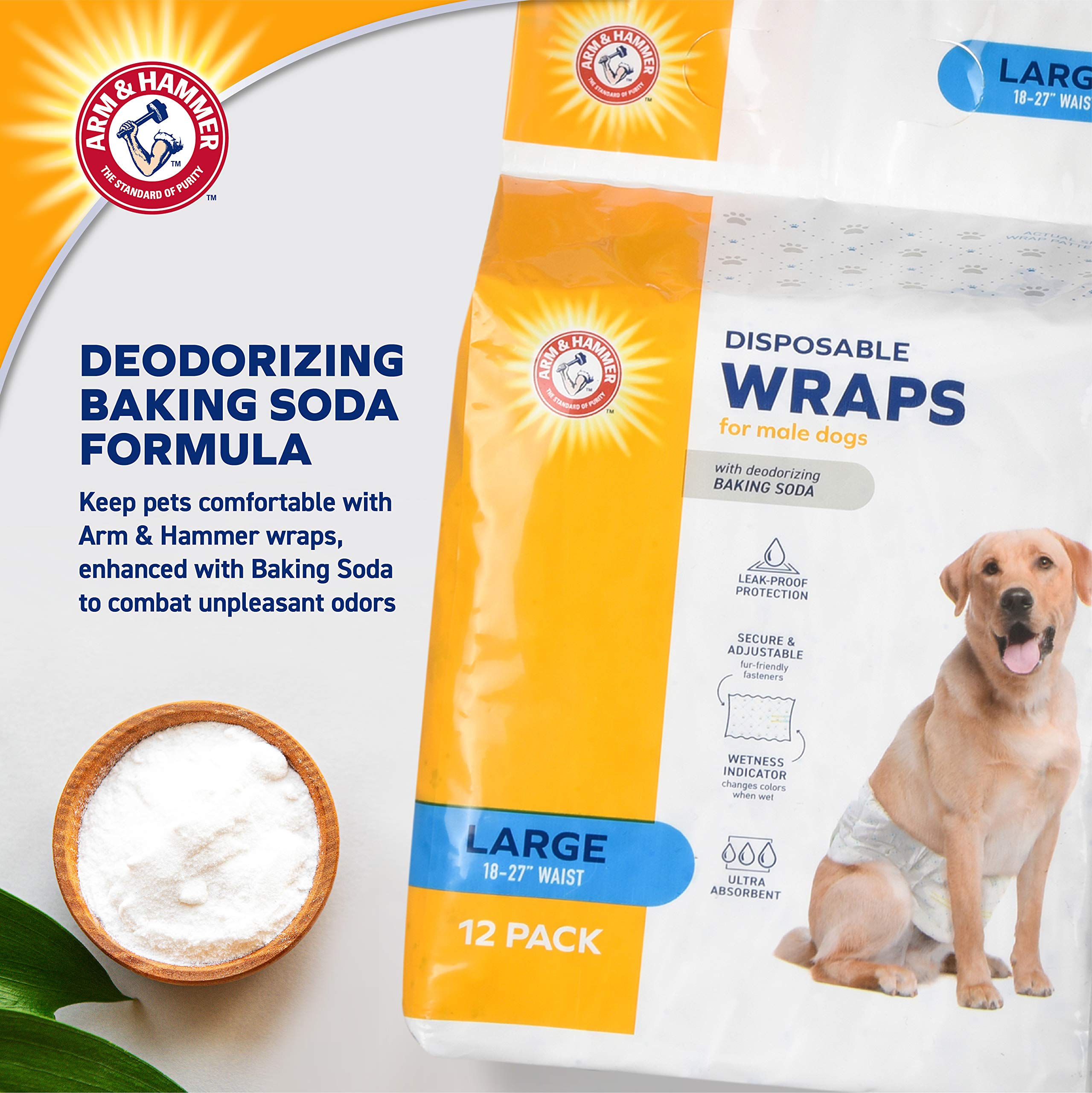 MADE WITH DEODORIZING BAKING SODA — Arm & Hammer male dog diapers are made with deodorizing baking soda, so your pup won't leave an unwanted smell even after the wrap is used