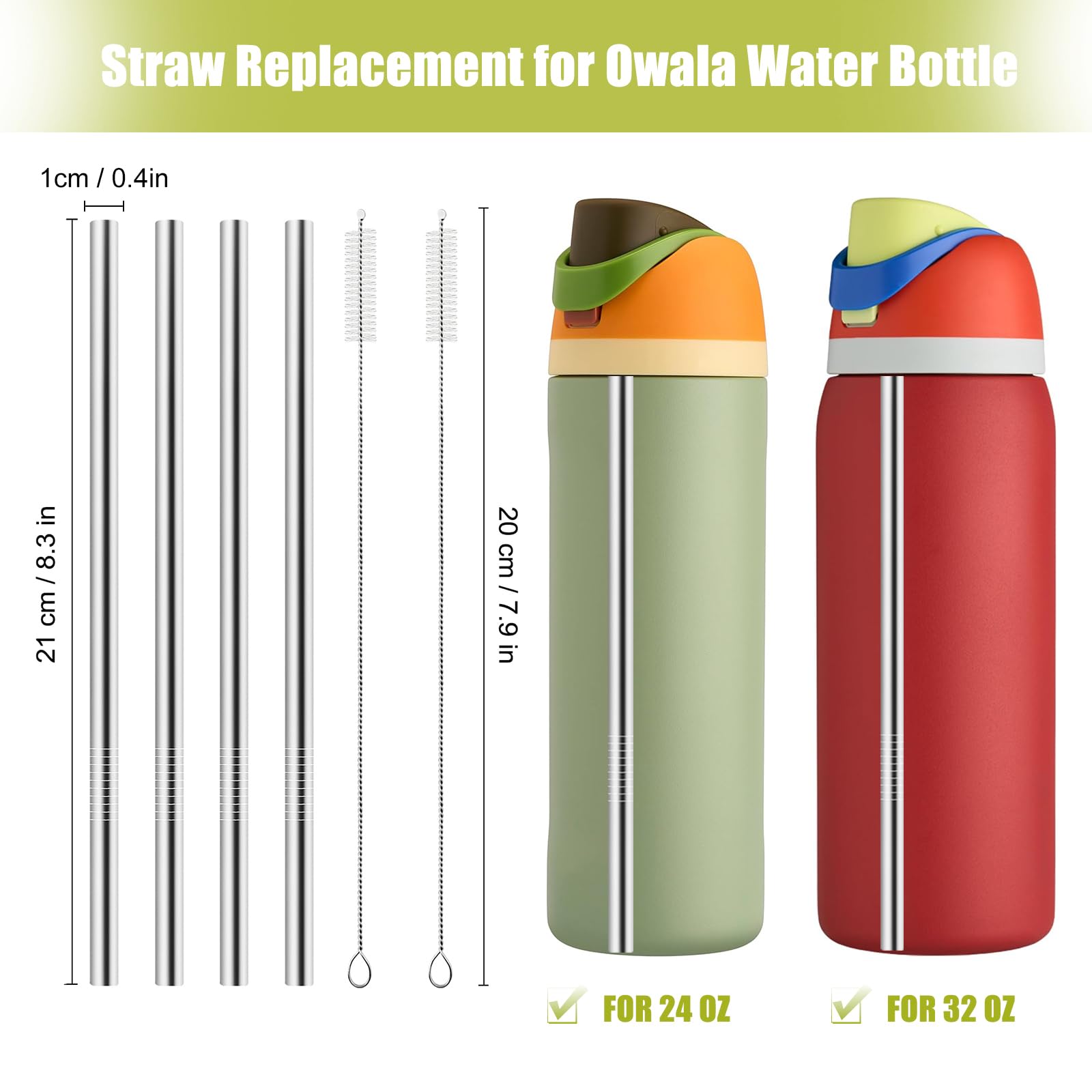 Perfect Fit and Functionality: Our metal replacement straws for the Owala Water Bottle 24 oz 32 oz, are precisely designed to seamlessly integrate with your Owala Water Bottle lid. Enjoy a perfect fit and reliable performance with every sip.