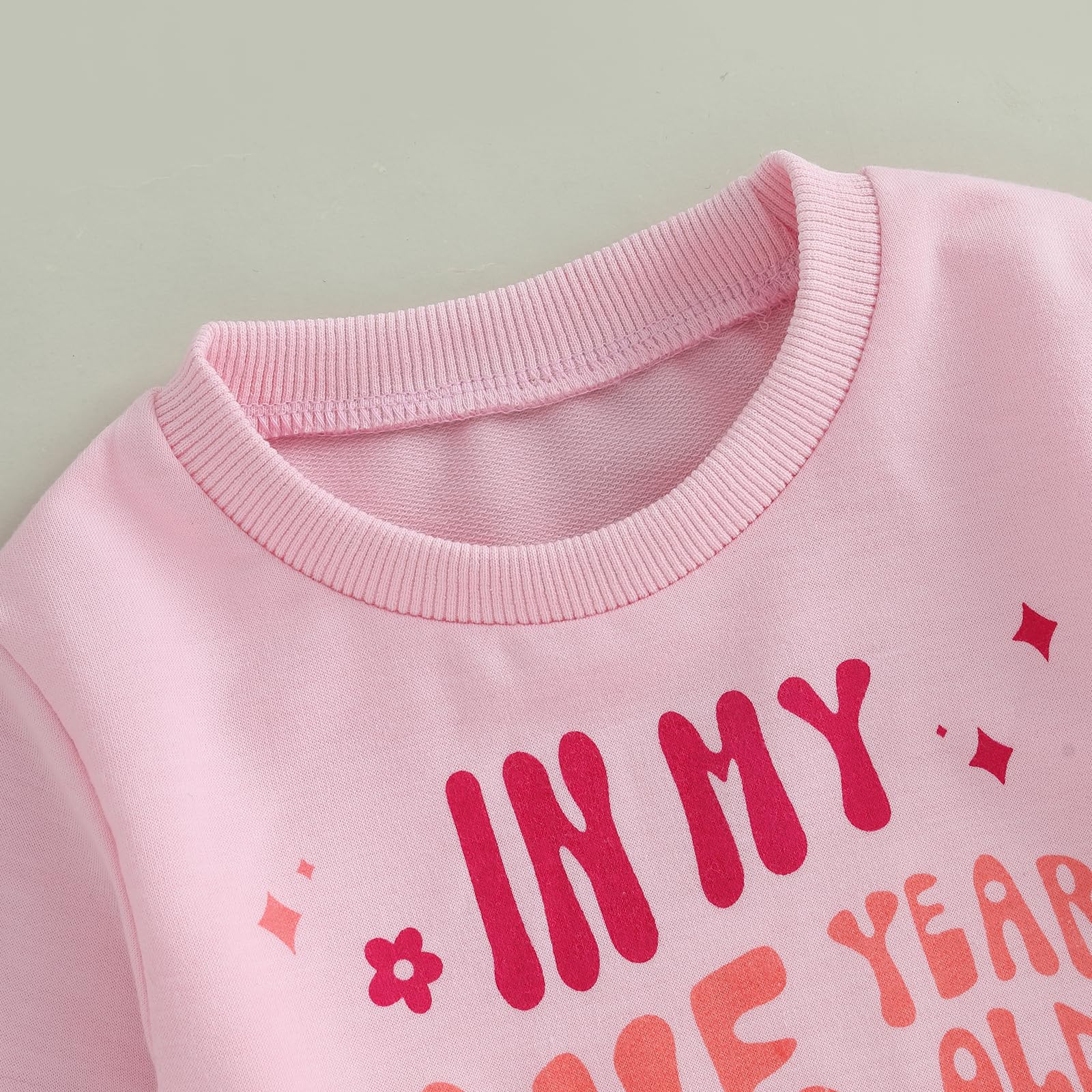 Design: Baby girl first birthday outfit, long sleeve, crewneck, in my one year old era print, 1st birthday sweatshirt, matching with elastic waist solid pants, very cute and trendy sweatsuit for spring,fall and winter, 1st birthday gifts girl, girls first birthday outfit