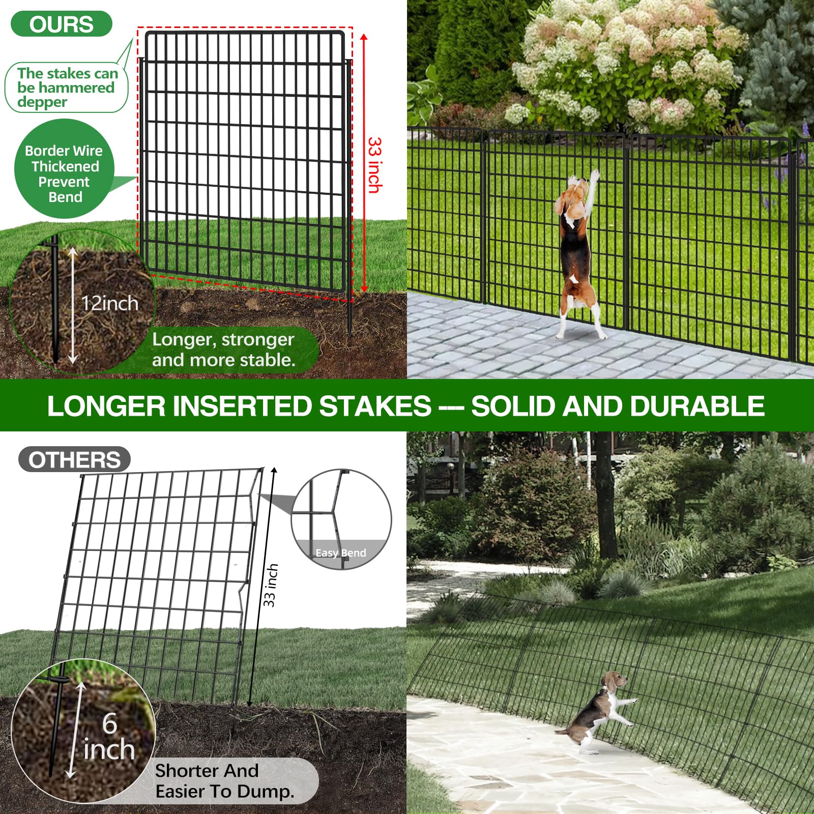 Dog Fence for Yard --- Each panel of the dog fence measures 33" H x 29" W, can be connected and expanded into different shapes based on your specific needs. Upgraded to 33-inch heightening design to prevent large dogs from entering the garden.