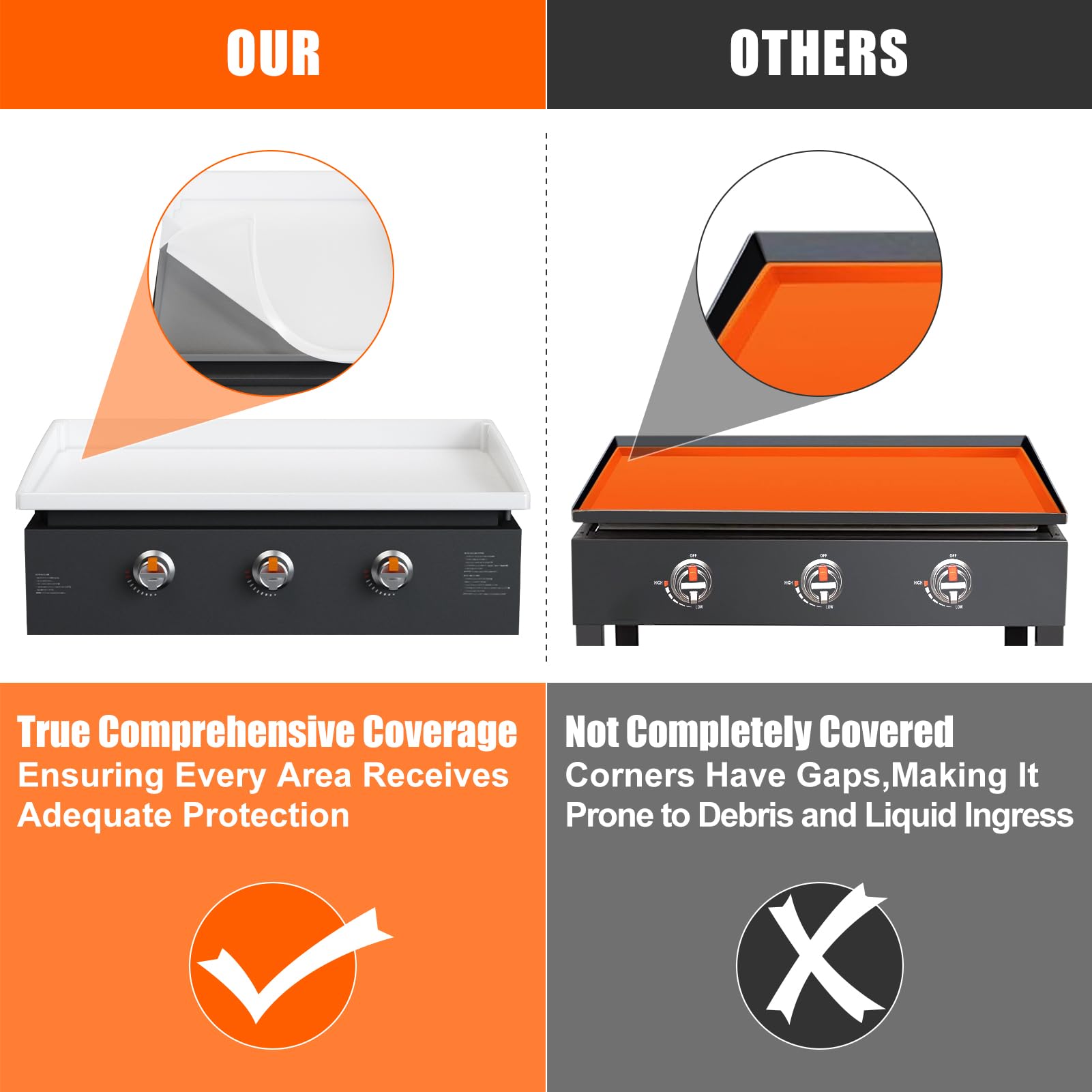 【FULL COVERAGE DESIGN】: Unlike other blackstone griddle mat that leave gaps in the corners, our innovative silicone griddle mat provides full coverage, ensuring every inch of your cookware is fully protected from pesky pollen, leaves, and more.