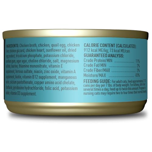 As obligate carnivores, cats have a natural instinct to hunt after dark and a nutritional need to eat meat. Tiki Cat® After Dark® Pâté+ is a meat-lover’s dream, closely mimicking cats’ natural prey diets. Real, finely minced chicken and quail egg - plus meaty morsels of organ meat - are combined with savory broth for the soft texture cats love. Give your carnivore cat the meat they crave in this tasty, easy-to-eat meal!