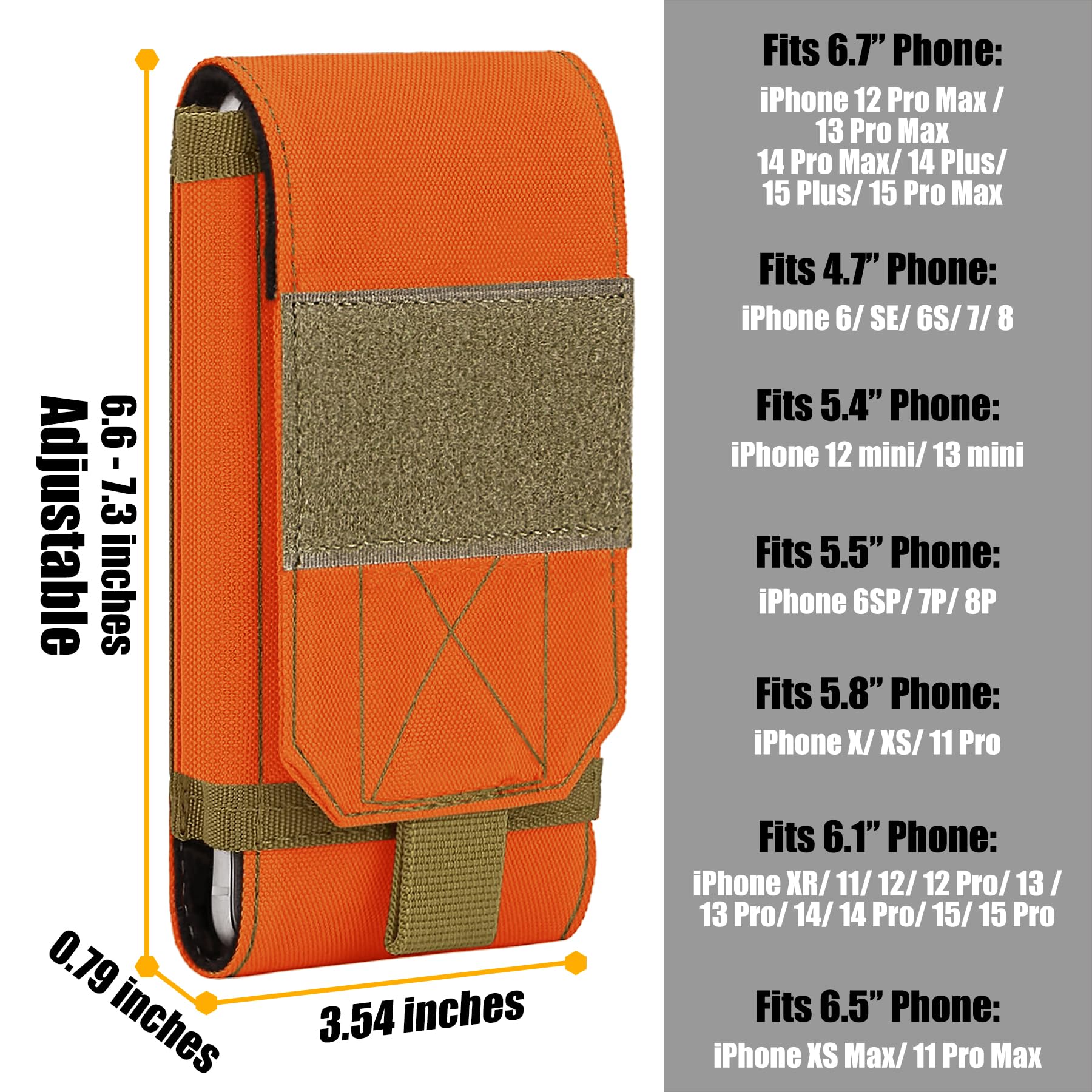 Can hold 4.7"-6.9" smartphones with a slim case on, like iPhone 17 Pro Max/17 Pro/17/Air/16 Pro Max/16 Plus/16 Pro/16/15 Pro Max/15 Pro/15 Plus/15/14 Plus/14 Pro Max/14 Pro/14/13 Pro Max/13 Pro/13/12 Pro Max/12 Pro/12/11 Pro Max/11 Pro/11/XS Max, Galaxy S24 Ultra, S24 Plus, S24, S23 Ultra, S23 Plus, S23, S22 Ultra, S22 Plus, S22, S21 S20 S10Plus S10 S10E S9Plus S9 S8Plus S8 A3 A5 A7 J3 J5 J7 and etc