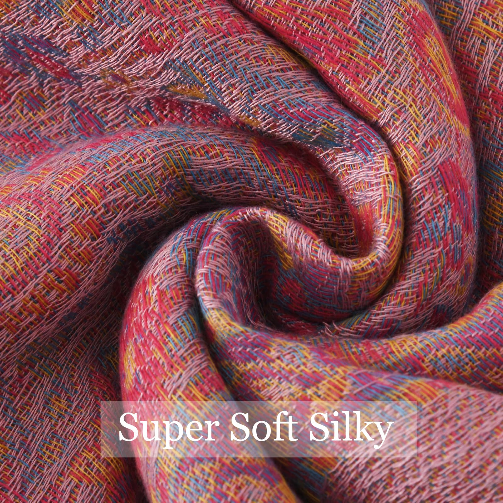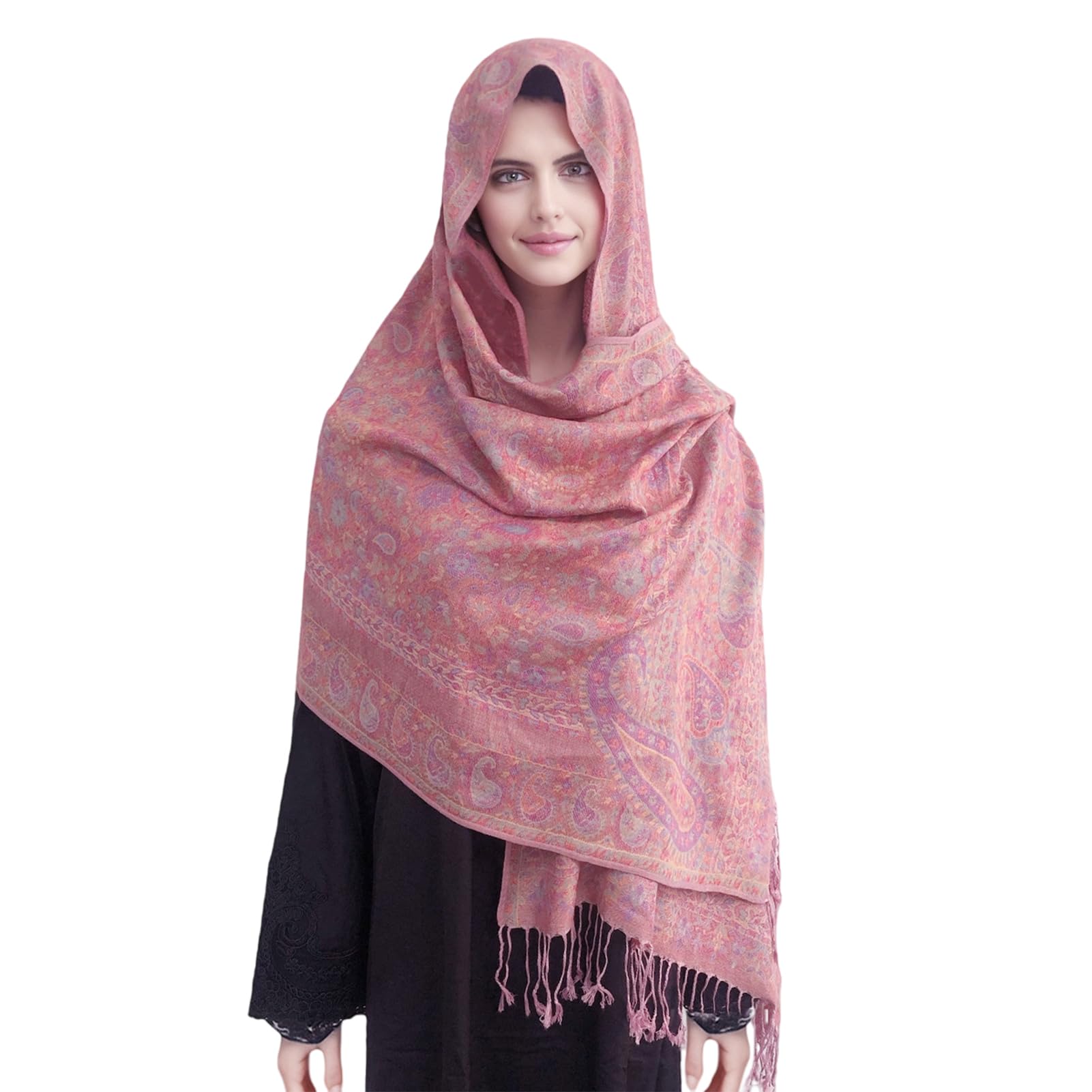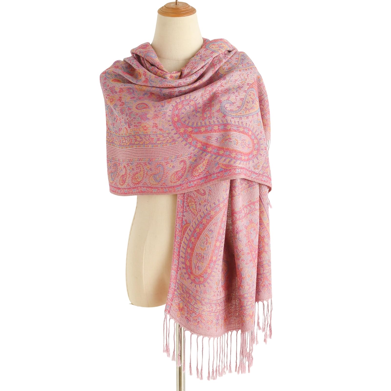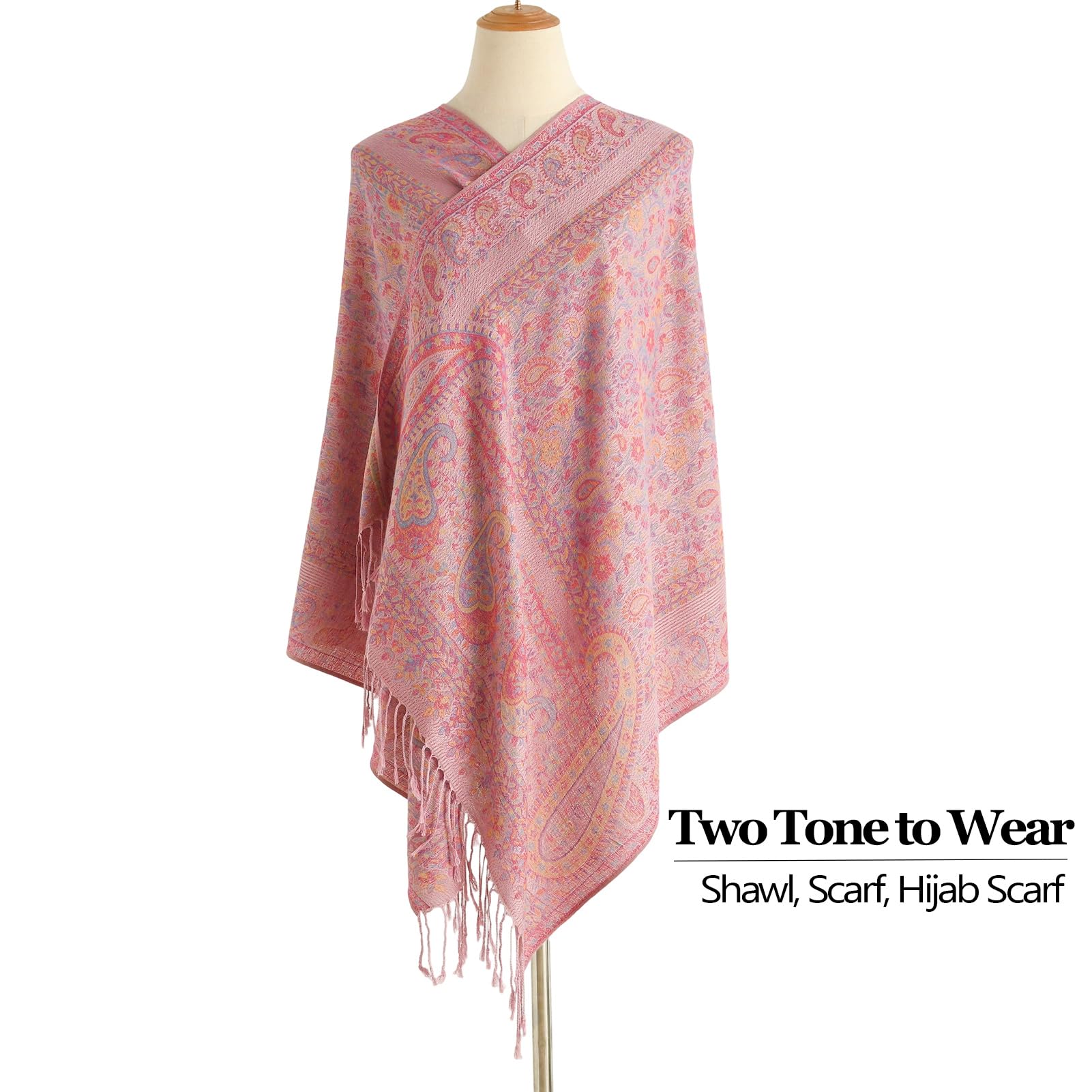SOFT COZY FABRIC: --Our rose pink pashmina scarf is made of 55% Viscose+45% Acrylic high quality fabric, delicate to touch, skin-friendly and breathable,Classic Durability