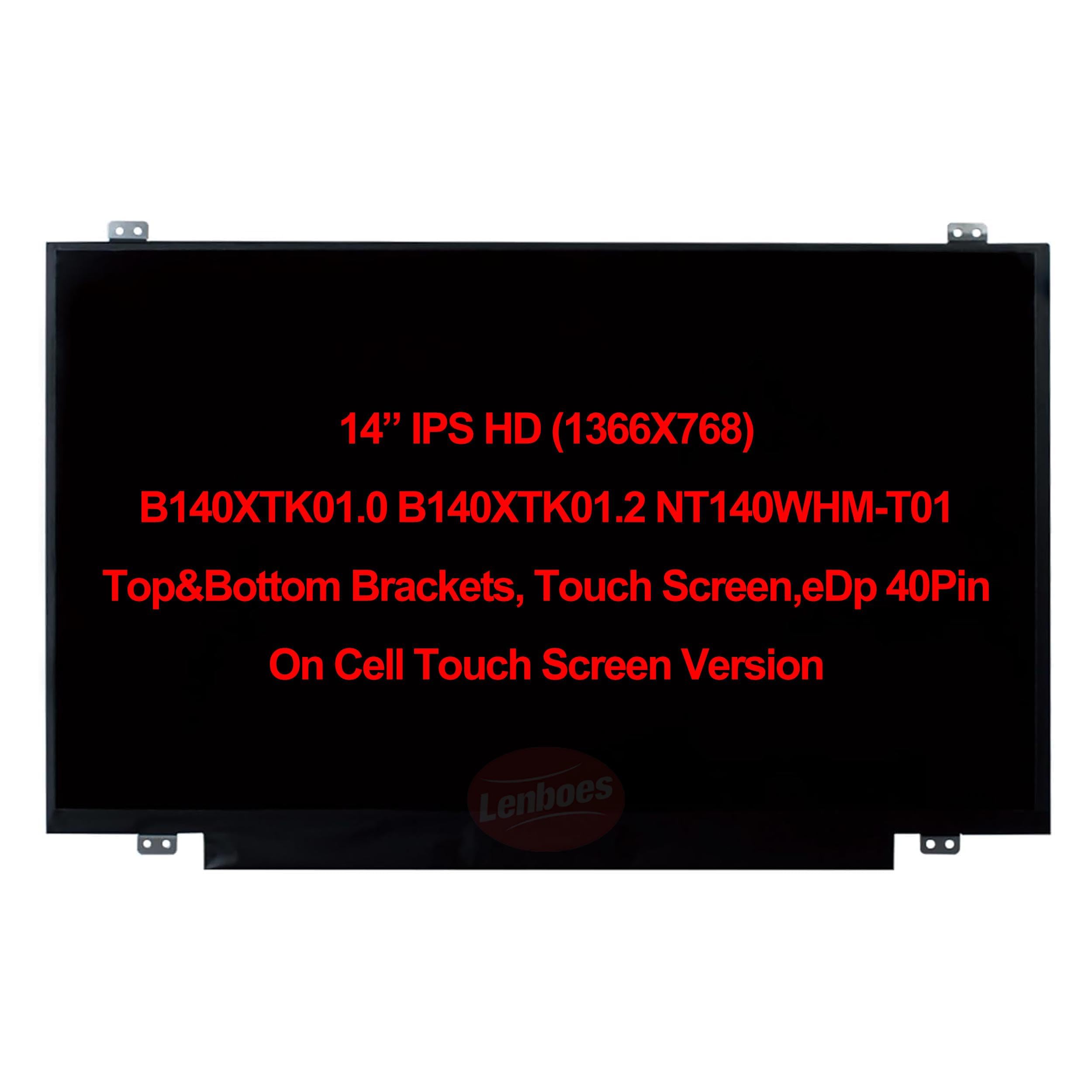 Brand New Laptop 14.0 Inch HD 1366x768 40 Pins IPS On-Cell Touch LCD Screen LED Display Replacement B140XTK01.0 B140XTK01.2 HW0A NT140WHM-T01 V8.0 Touch Panel with Top Bottom Brackets