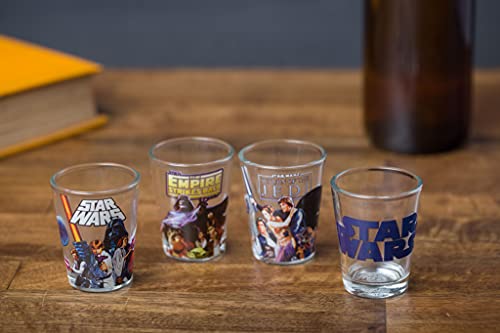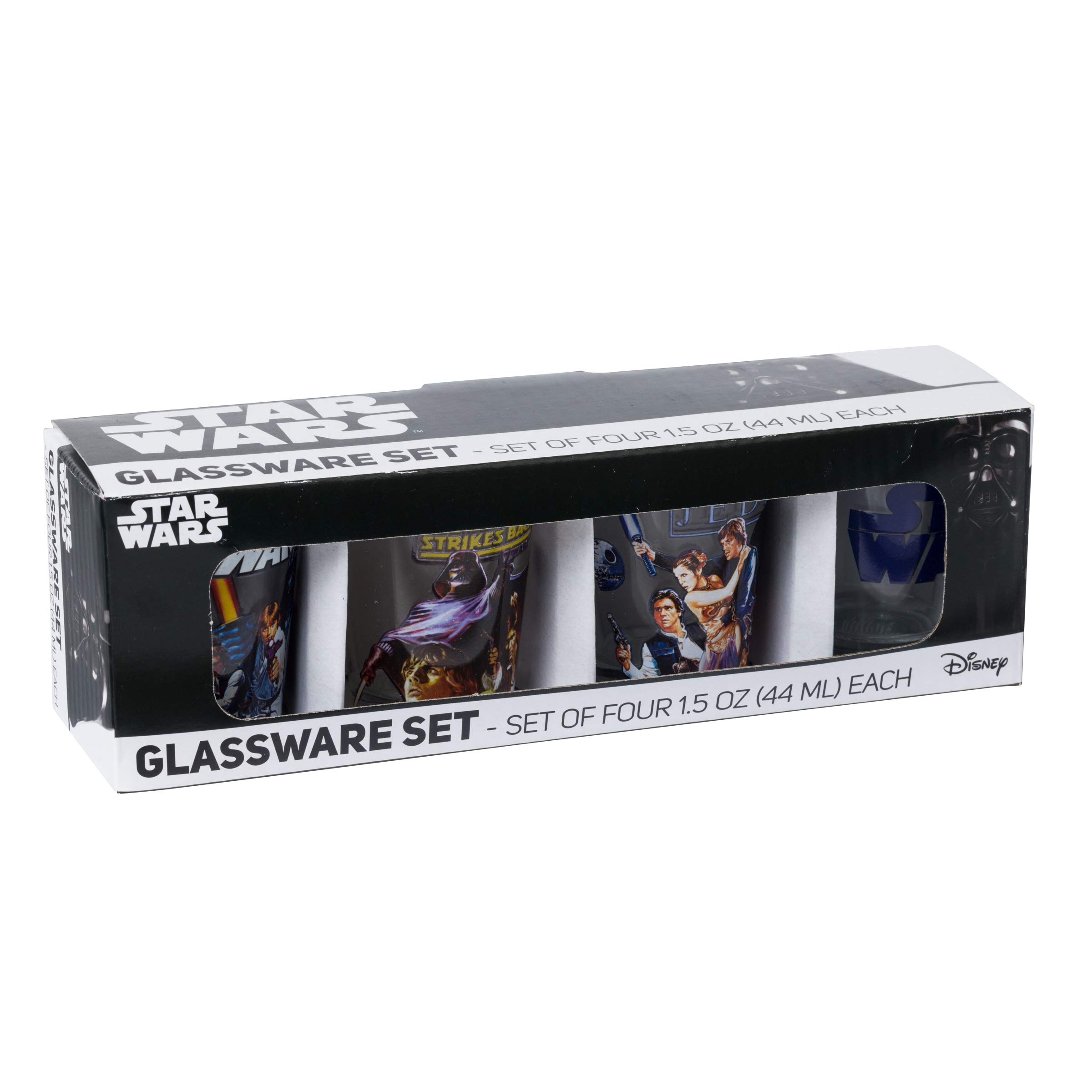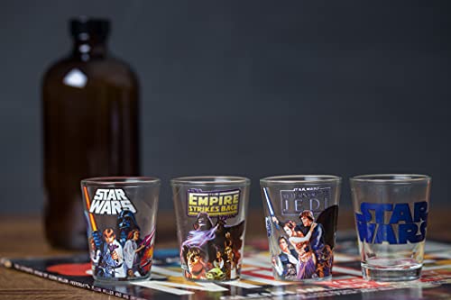 MINI-GLASS SET: Our 4-piece mini-glass set features imagery from the original Star Wars trilogy dispalying the iconic Star Wars logo or one of the original trilogies movie posters
