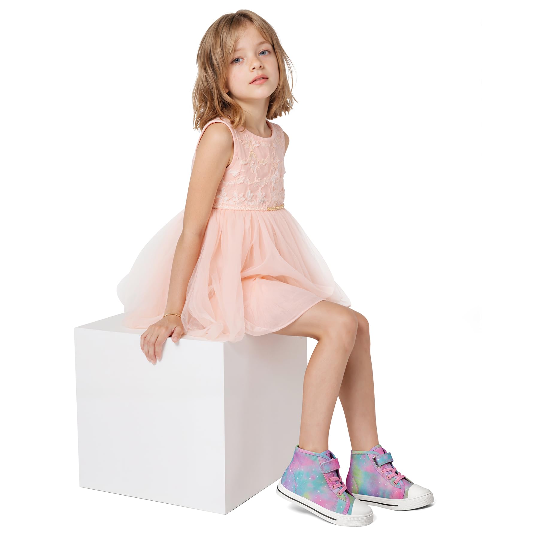 Vibrant Color: Gradient colors, which is mysterious and romantic, offer a good-looking for your kid. When wearing this little girl shoes back to school, she would be the coolest in the class.
