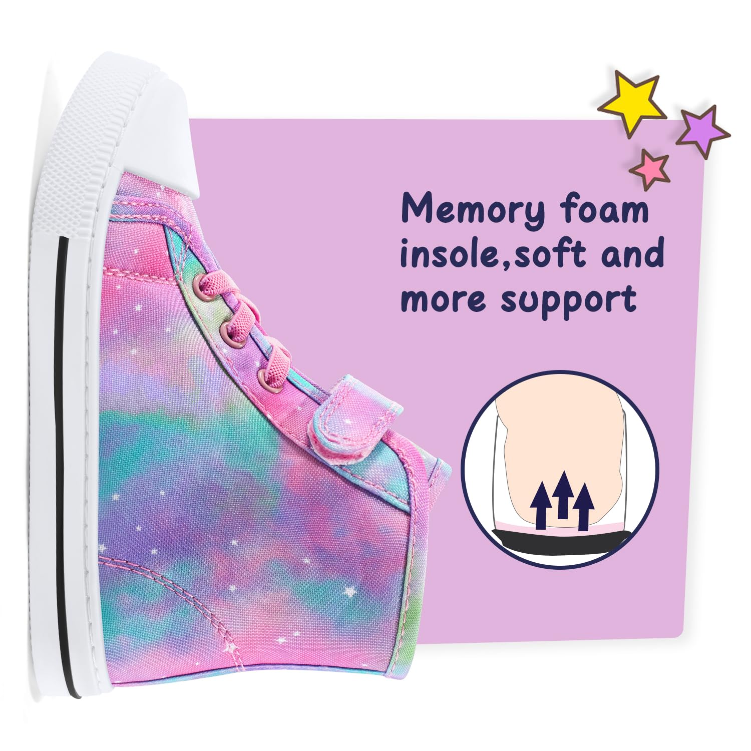 Quality Canvas: Designed with quality materials--breathable canvas, our high-top canvas sneakers ensure soft touch to their skin and also keep their feet dry, which are easy to keep comfortable to wear.