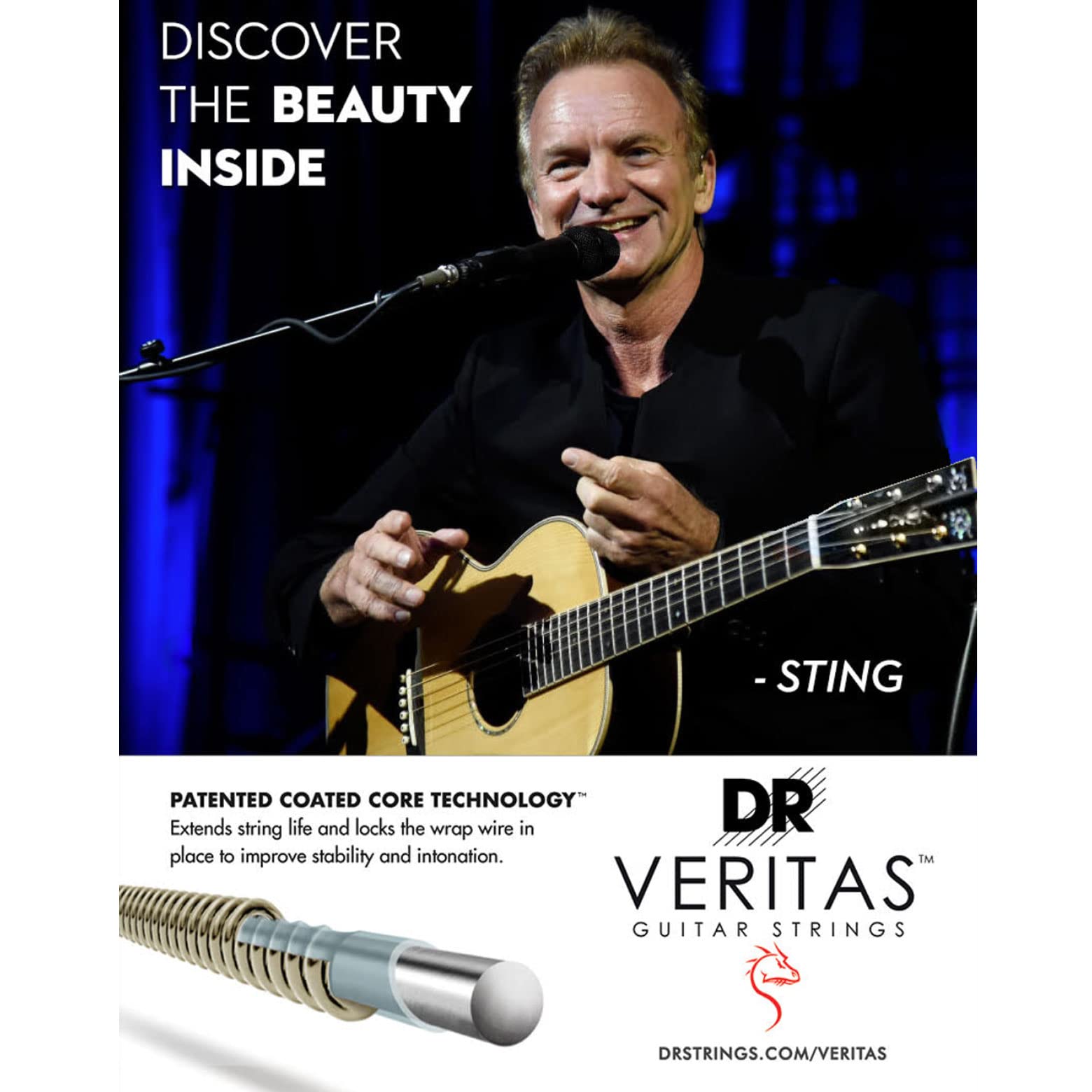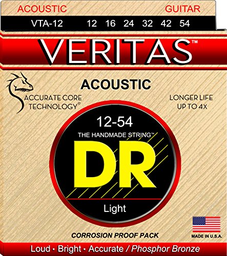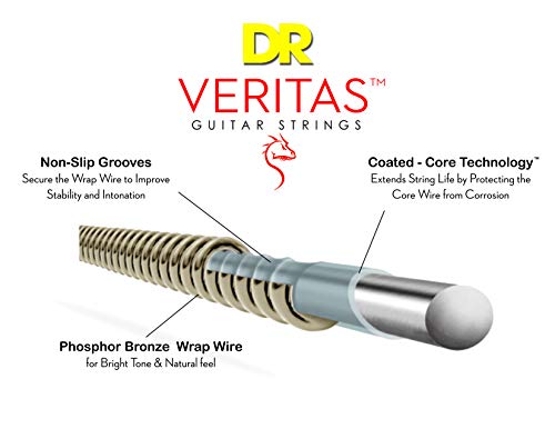 VERITAS™ Acoustic Guitar Strings maintain their tone, tuning stability and intonation thanks to our Coated Core Technology™, a process of coating the round core wire, which locks the wrap wire in place and extends string life by protecting the core from corrosion. A phosphor bronze wrap wire delivers a traditionally bright tone and natural feel. All VERITAS™ sets include both standard plain steel AND Xenon Power-Plain™ strings, which have increased output to balance with the wound strings.