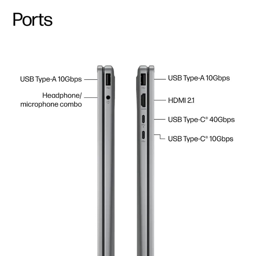 Ram & Storage: 16GB LPDDR5x-7500 MT Memory; 512GB PCIe Gen4 Solid State Drive