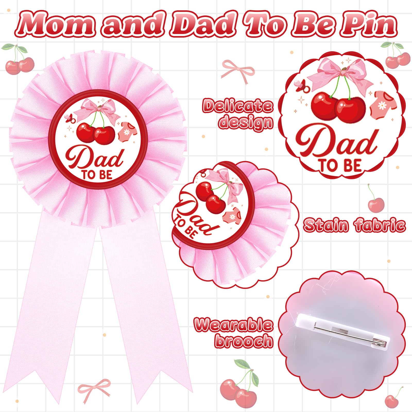 Reliable Material: these cherry baby shower decorations are mainly made of fabric and ribbon, this shoulder sash and pin kit is reliable and soft, wear resistant, not easy to break or deform, and can be applied by dad or mom for a long time