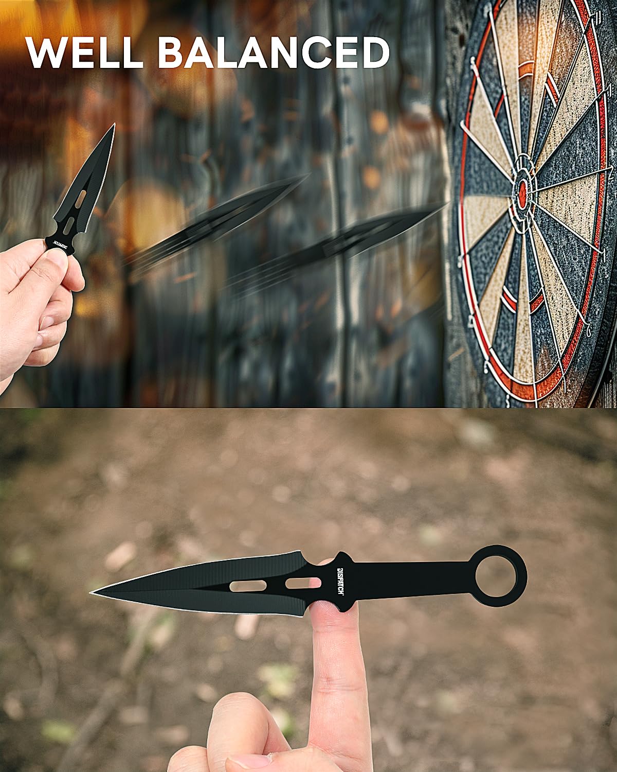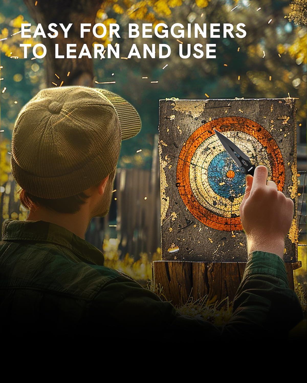 GREAT THROWING EXPERIENCE: The knives are well balanced, so you don’t feel any tension in hand while throwing; it just flies off your hand and hits the target; it’s perfect for outdoor games, competitions and backyard practicing