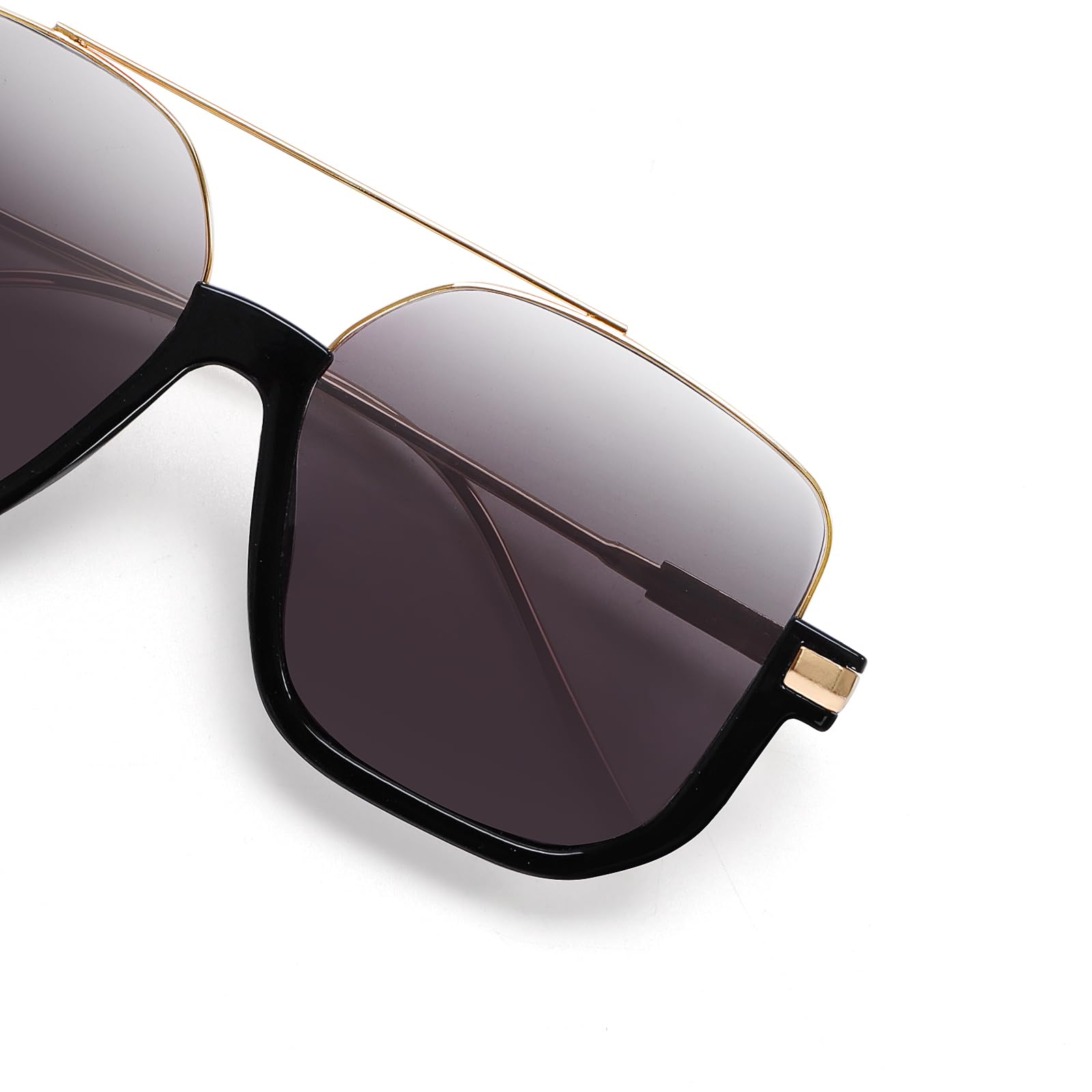 These pilot-style sunglasses featuring Semi-Rimless frame, tinted lenses, slim arms, hair friendly nose pads, suitable for both men and women. Lightweight, you can wear them for long time without fatigue.