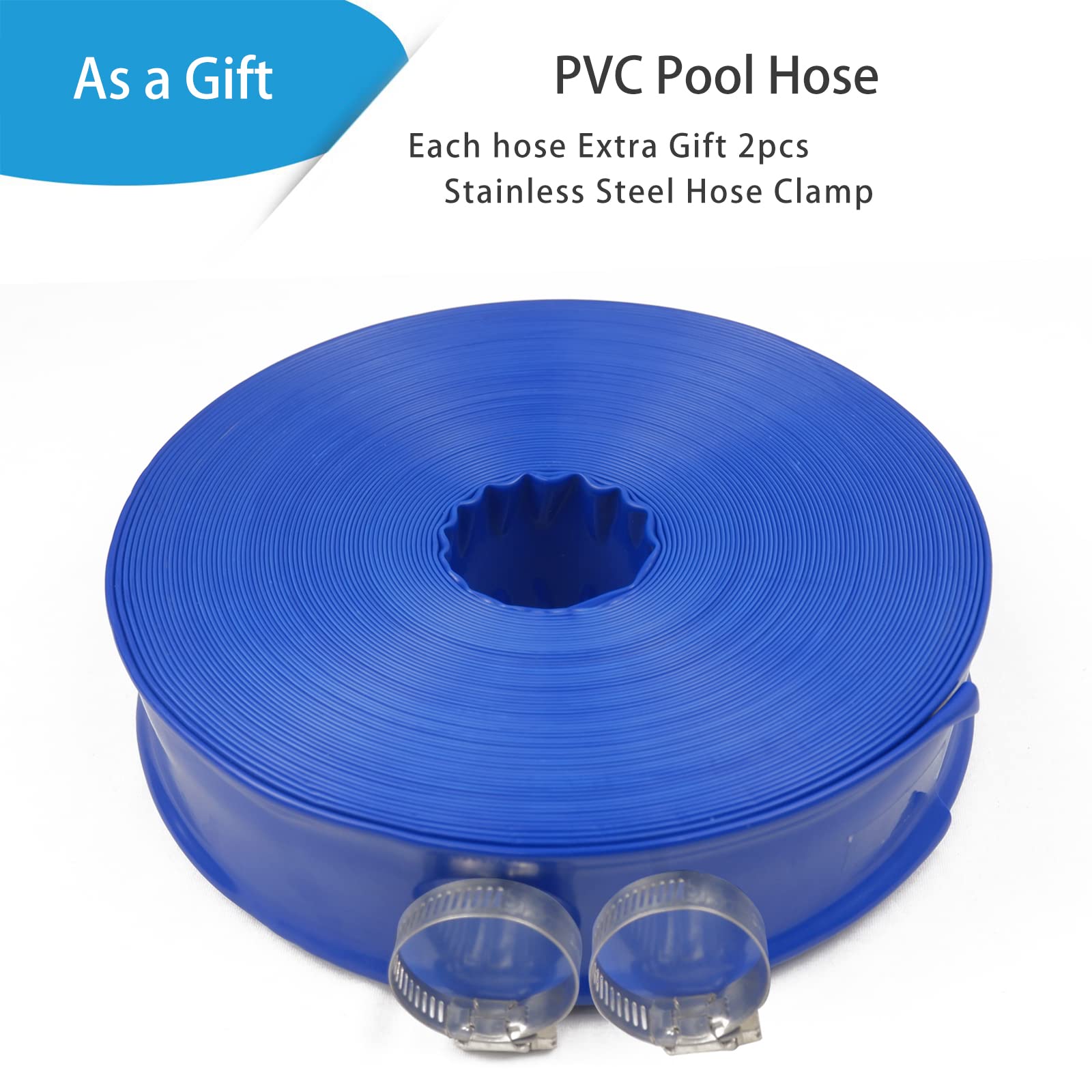 1-1/2" (38mm) diameter by 100' (30.4m) long PVC swimming pool backwash hose with 2pcs hose clamps