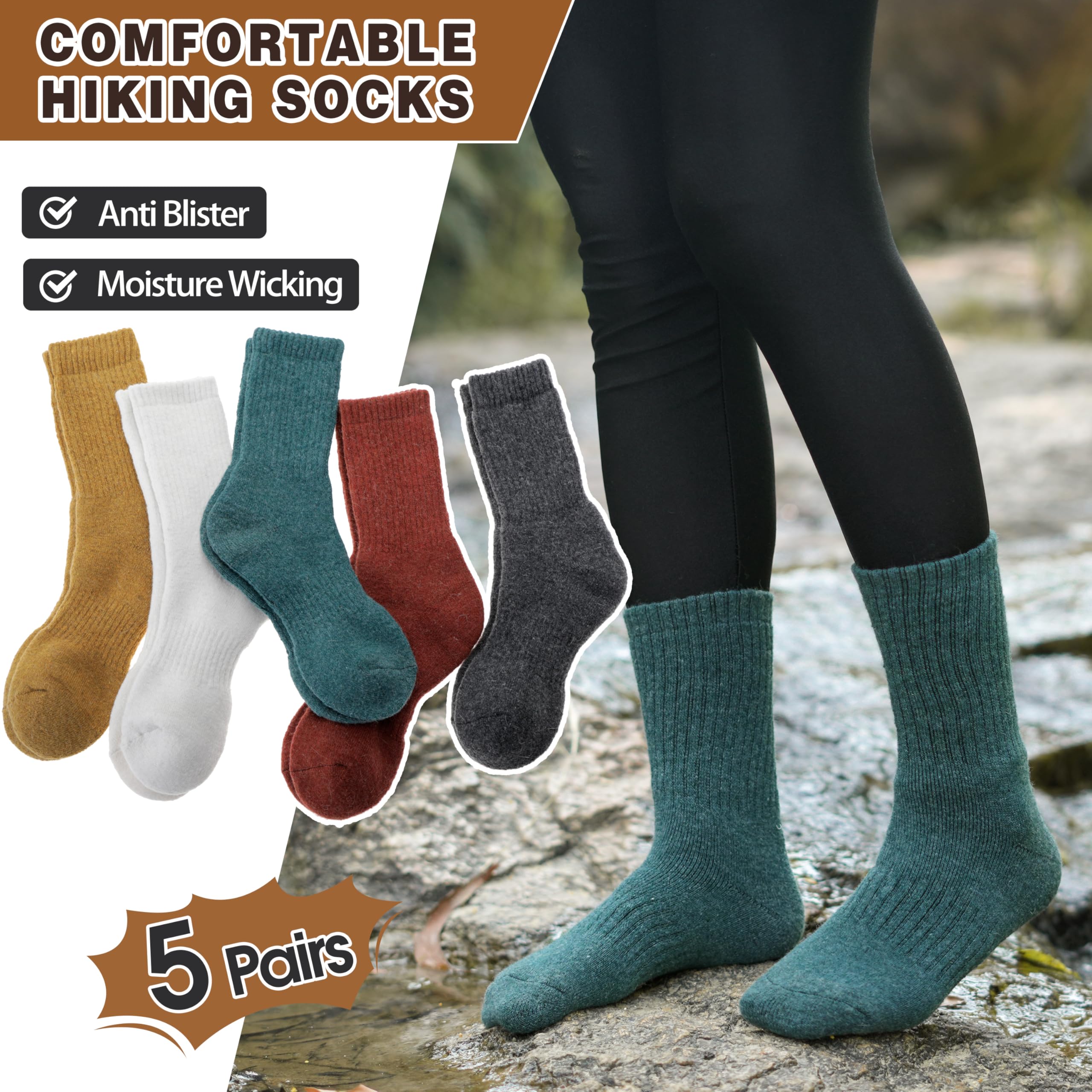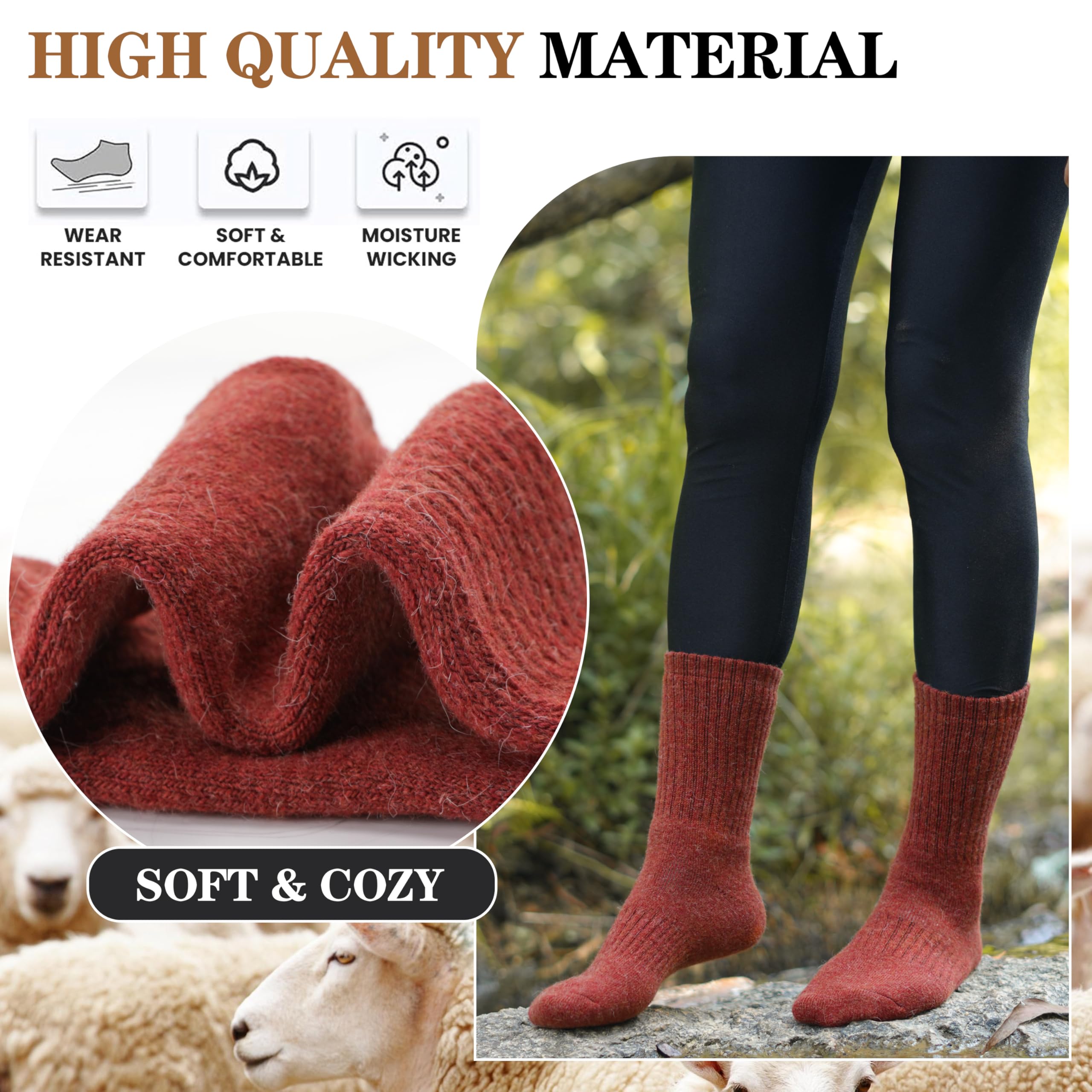 HIGH QUALITY : The womens wool socks for hiking are blend of premium natural wool and cotton. These winter hiking socks for women are heavy, soft, comfortable, breathable, warm, cozy and durable.