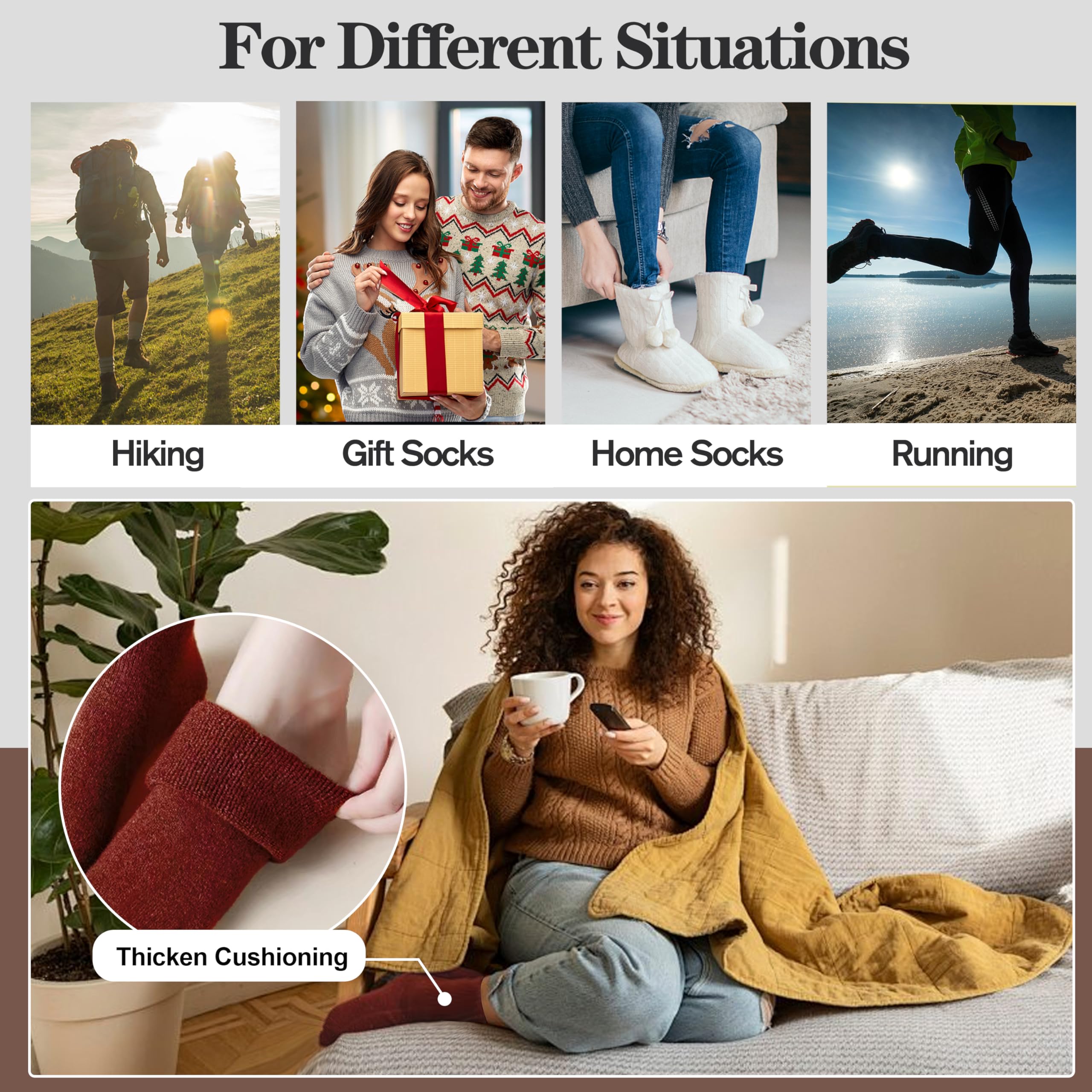FIT MANY OCCASIONS : These high-quality womens warm wool socks are suitable for different situation, you can wear them as heavy socks, hiking socks,thermal socks, thick socks, warm socks, heavy duty socks, boot socks, soft socks, outdoor socks, sport socks, cabin socks, crew socks, office socks, school socks, indoor socks, home socks, work socks, knit socks,novelty socks, comfy socks, cold weather socks or Christmas socks.