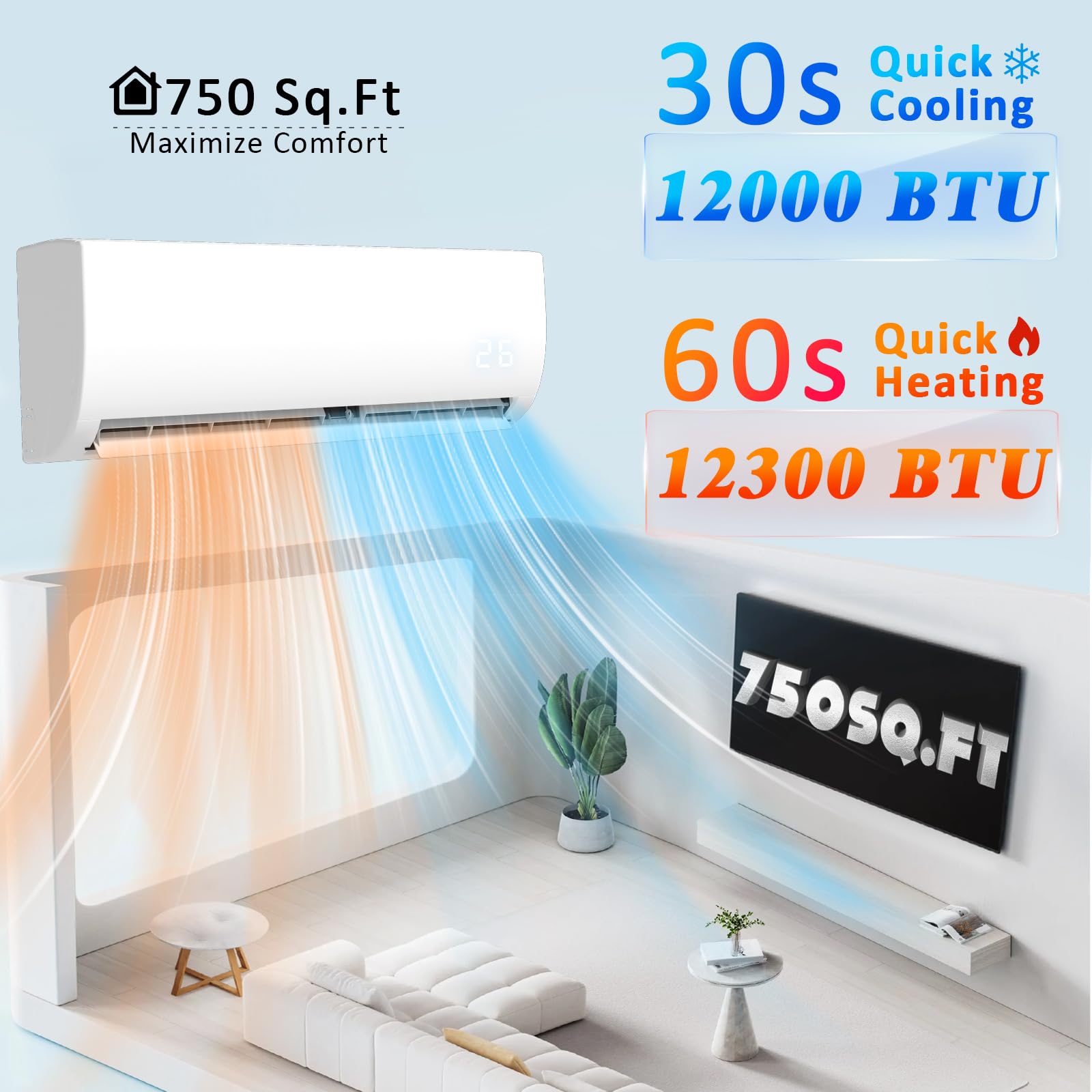 Fast Cooling for various Space: Beat the heat/cold in a flash with our 12,000 BTU mini split ac/heating system. Equipped with advanced inverter technology, it effortlessly chilling rooms up to 750 square feet. Pre-charged with the advanced eco-conscious R32 refrigerant, which provides efficient cooling in summer and heating in winter. Whether it’s your bedroom, living room, office, or apartment, enjoy swift, consistent cooling/heating all year around.
