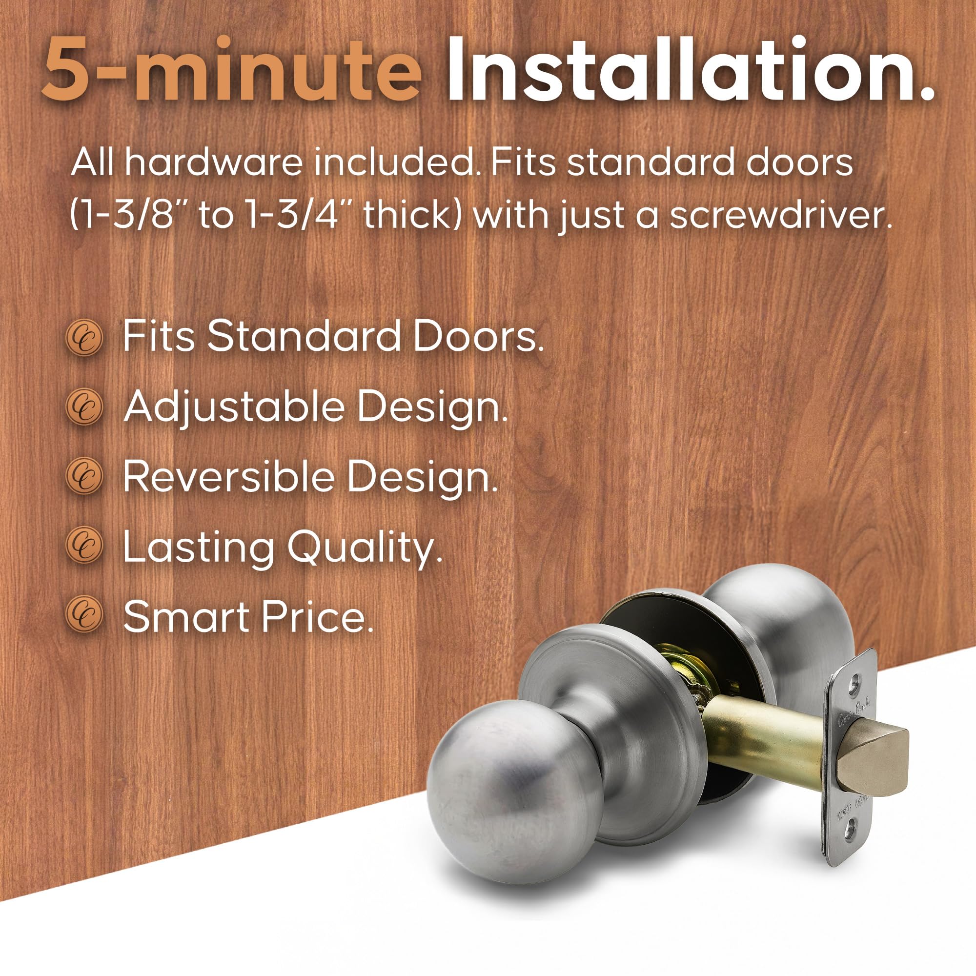5-Minute Installation. Installs quickly with just a screwdriver. Fits all standard doors (1-3/8" to 1-3/4" thick) with the included hardware. Adjustable latch fits both 2-3/8" and 2-3/4" backsets.