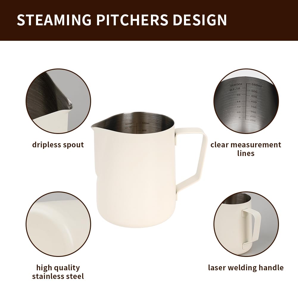 DRIPLESS SPOUT DESIGN: The dripless spout allows you pour milk foam smoothly and precisely without dripping. You can practice and create your own beautiful latte artwork easily!