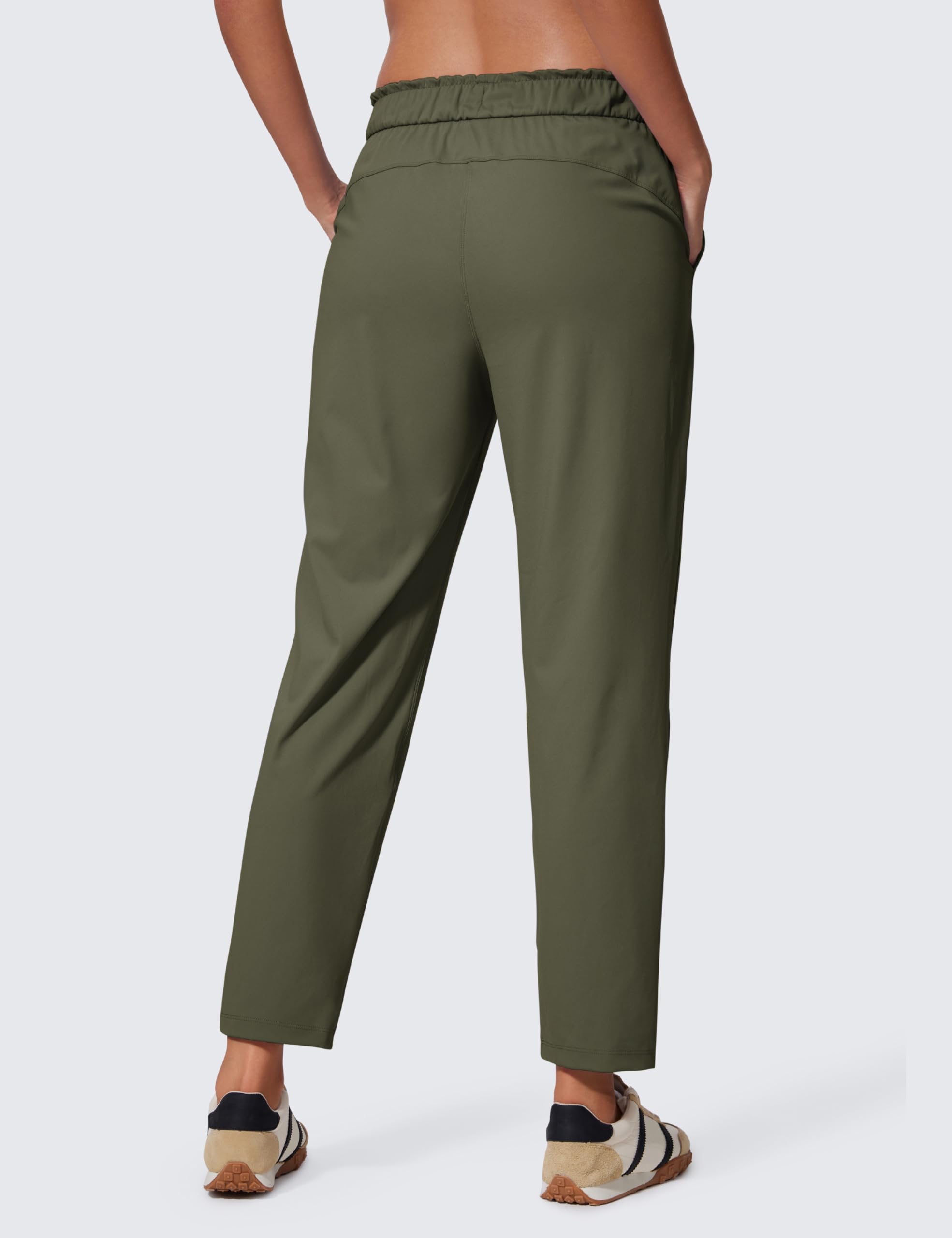 Description Walk the City Collection: 4-Way Stretch Ankle Pants The Walk the City Collection is super stretchy and light. Versatile dress up or down pants could be worn for work, travel, golf, running errands, etc. Feature & Fitting: Ankle pants High waist with drawstring Side pockets with inner pocket 27'' inseam Fabric: Buttery soft, wrinkle-free fabric Lightweight and durable Stretch, smooth to touch 75% Polyamide, 25% Spandex