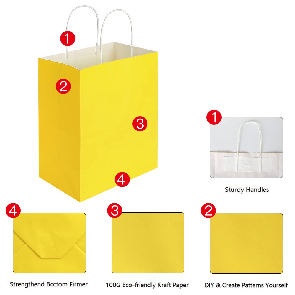 Rugged and Durable: This paper bag is made of 100GSM kraft paper, which is more durable and can withstand a weight of 8 pounds, which can meet the needs of your daily life.