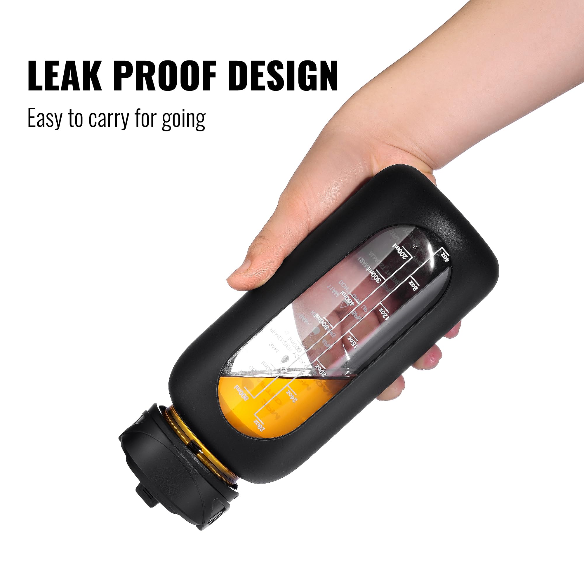 TRACK HYDRATION AND TIME MARKER DESIGN: The glass water bottle comes with time markers and exact volume on the side, monitor your daily hydrated intake and stay on track meet your health and fitness goals, nudge you getting into healthy habit of drinking water
