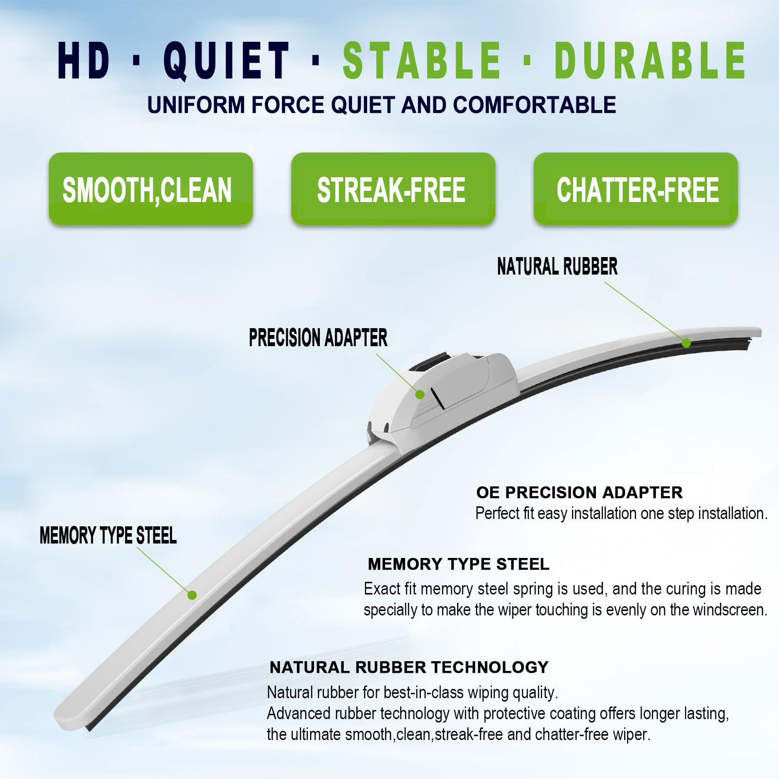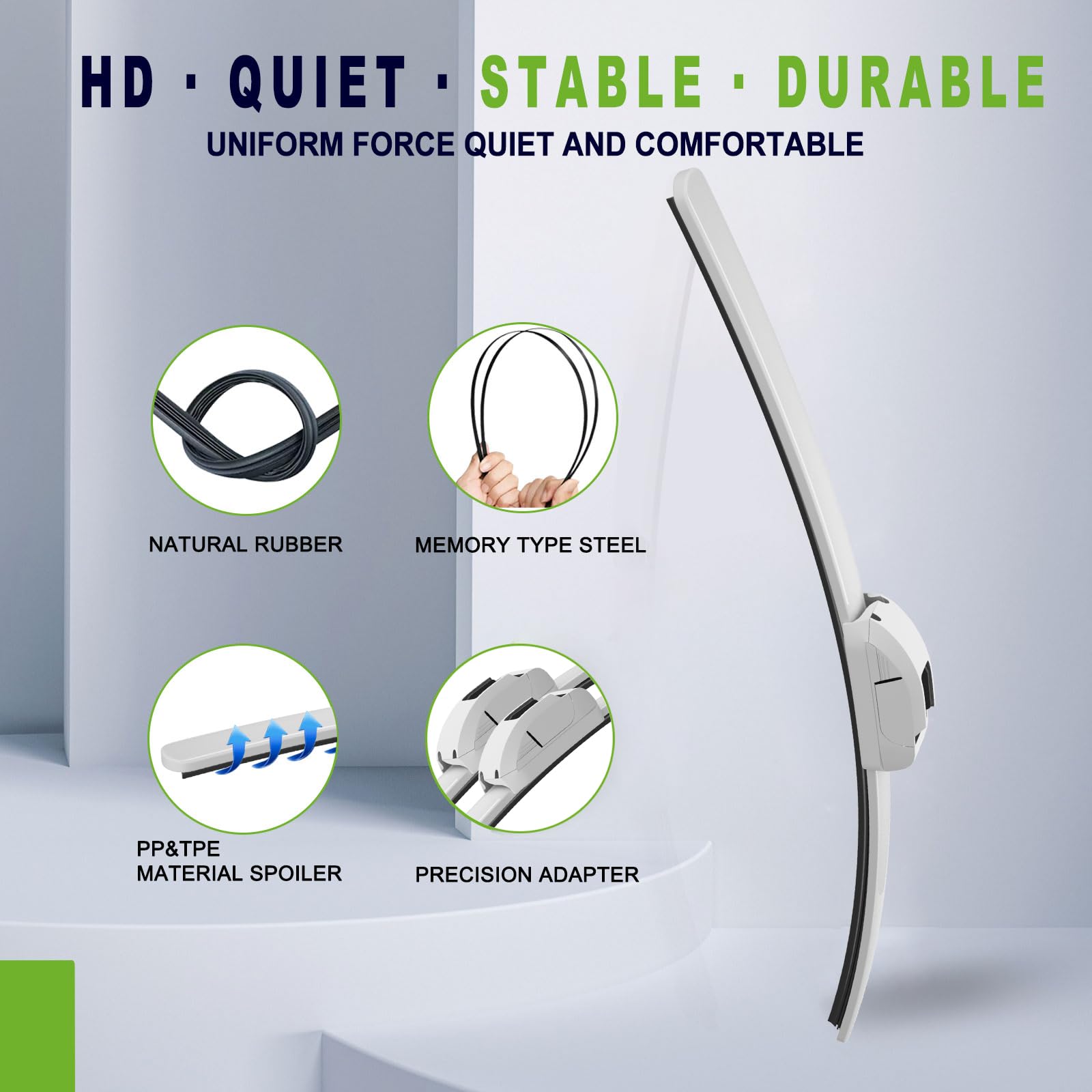 【QUALITY】The natural rubber material provides excellent cleaning and wiping performance for white wipers. The wiper is wiped clean and streak-free, providing safer protection throughout the entire use process.