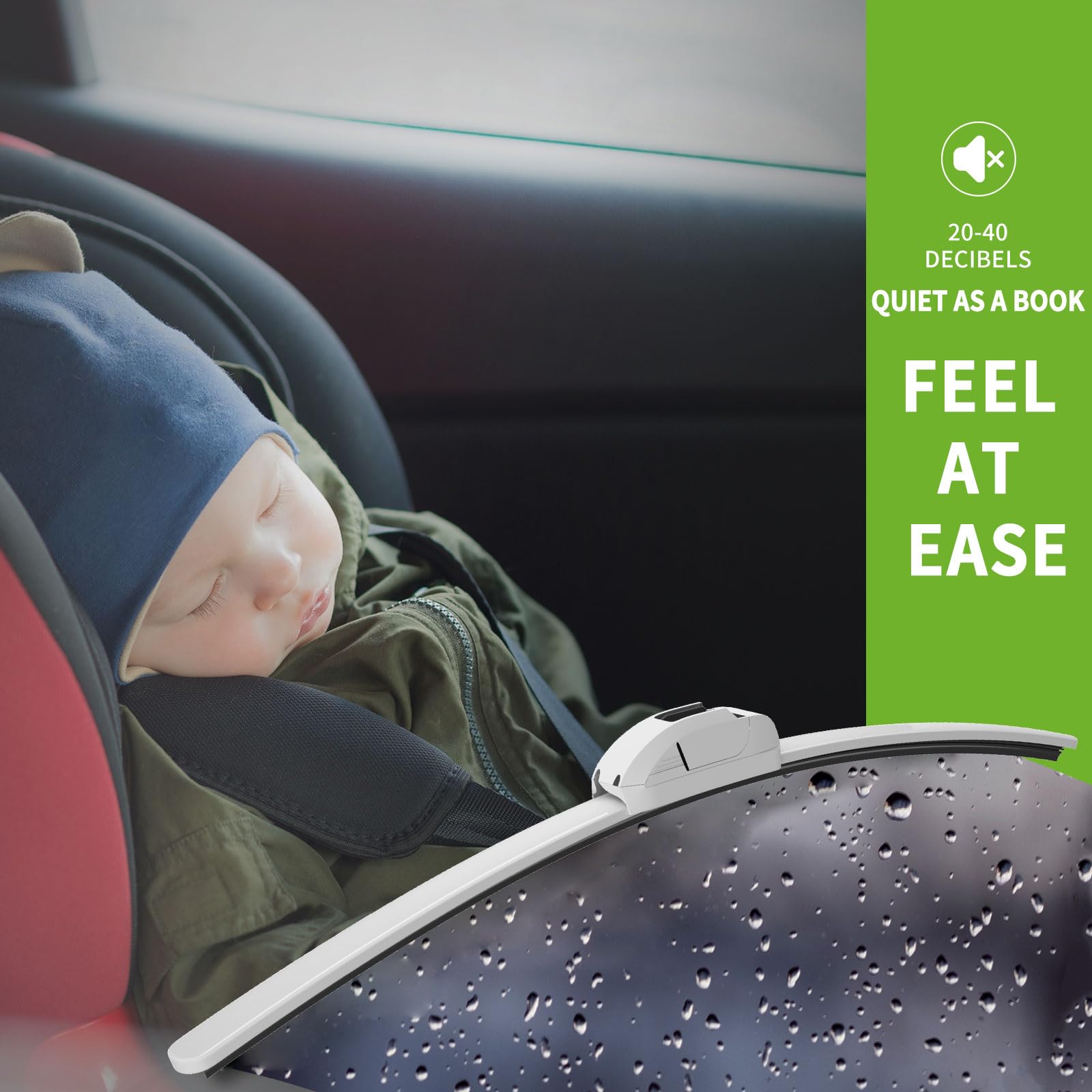 【DESIGN】Aerodynamic design significantly reduces drag, noise and wind lift. Bracketless design helps prevent snow and ice buildup.Dual precision-tensioned steel springs, coupled with an asymmetrical wind spoiler, deliver uniform pressure distribution and better windshield contact, Conforms to windshield curve, eliminating wet spots that can impede your vision.