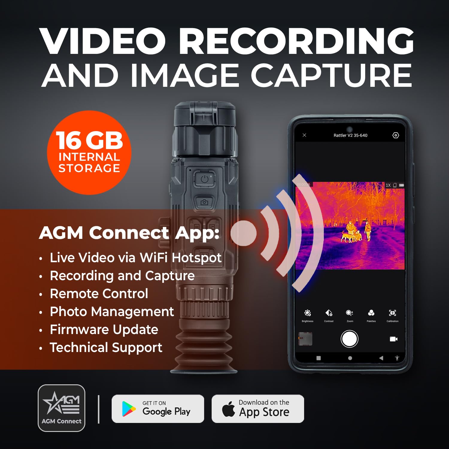 Introducing the AGM RATTLER V2 35-640 Thermal imaging riflescope, the pinnacle of thermal imaging technology for hunters and outdoor enthusiasts. With its premium features and cutting-edge design, this thermal scope takes your hunting experience to the next level. Featuring a 35mm Germanium lens and a 640 × 512 resolution thermal sensor, the RATTLER V2 35-640 provides unparalleled clarity and precision. With a base magnification of 2x and a detection range of up to 1800 meters, you'll have the advantage of spotting your target from a distance with ease. But that's not all. This thermal scope comes loaded with advanced features, including shot-activated recording, video and audio recording capabilities, and a simplified menu layout for intuitive operation. With 10 reticle options and multiple zeroing profiles, you can customize your scope to suit your specific needs and preferences. The RATTLER V2 35-640 also boasts an upgraded battery compartment, accommodating a rechargeable battery for extended run time of up to 9 hours. Its Wi-Fi hotspot connectivity allows for seamless integration with the AGM app, providing live video streaming and easy sharing of images and videos. Constructed with durability in mind, this thermal scope is waterproof, shockproof, and built to withstand the rigors of outdoor use. Plus, with a custom ADM QD Mount included, you can easily attach and detach the scope as needed. Don't settle for anything less than the best. Elevate your hunting game with the AGM RATTLER V2 35-640 Thermal Weapon Sight.