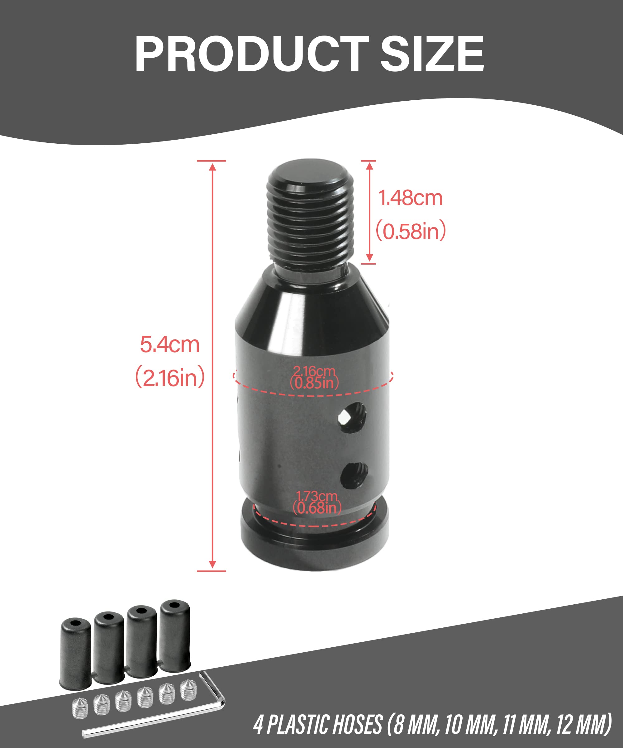 [Package Included] The package includes 1 shift knob shifter adapter, 4 plastic hoses (8mm, 10mm, 11mm, 12mm), 6 screws, and 1 wrench.