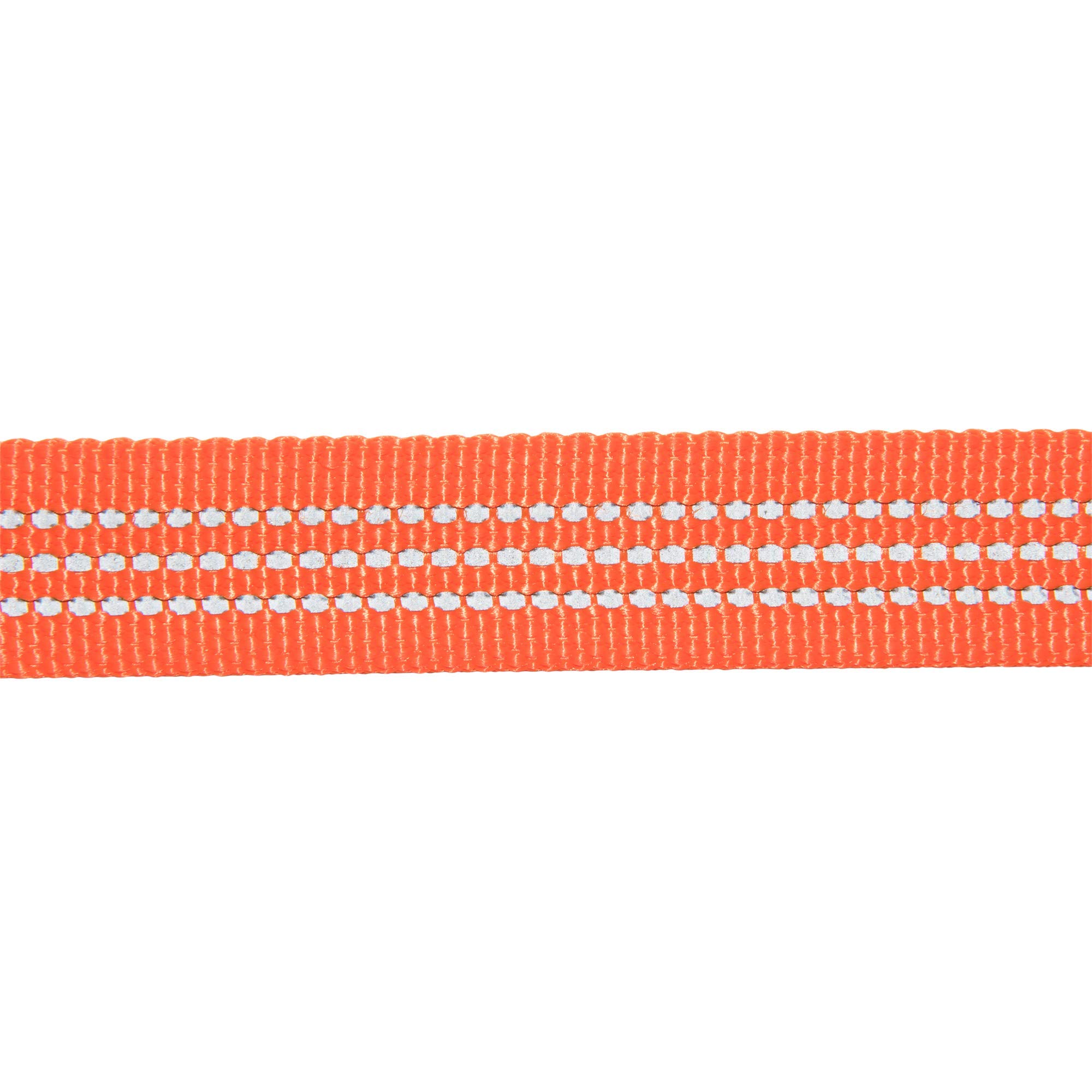 Durable nylon webbing with Duck canvas Weave with reflective triple needle stitch for low-light visibility rugged metal trigger claw clasp - glove-friendly extra gated clip for multiple quick attachment options rugged slotted metal D-ring that maneuvers up and down leash for adjustable attachment options6’ long in both small and Large widthssize: Large 6' Length, 1" Width