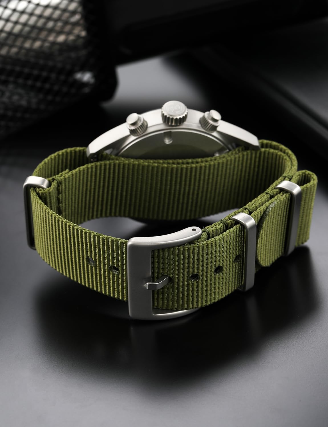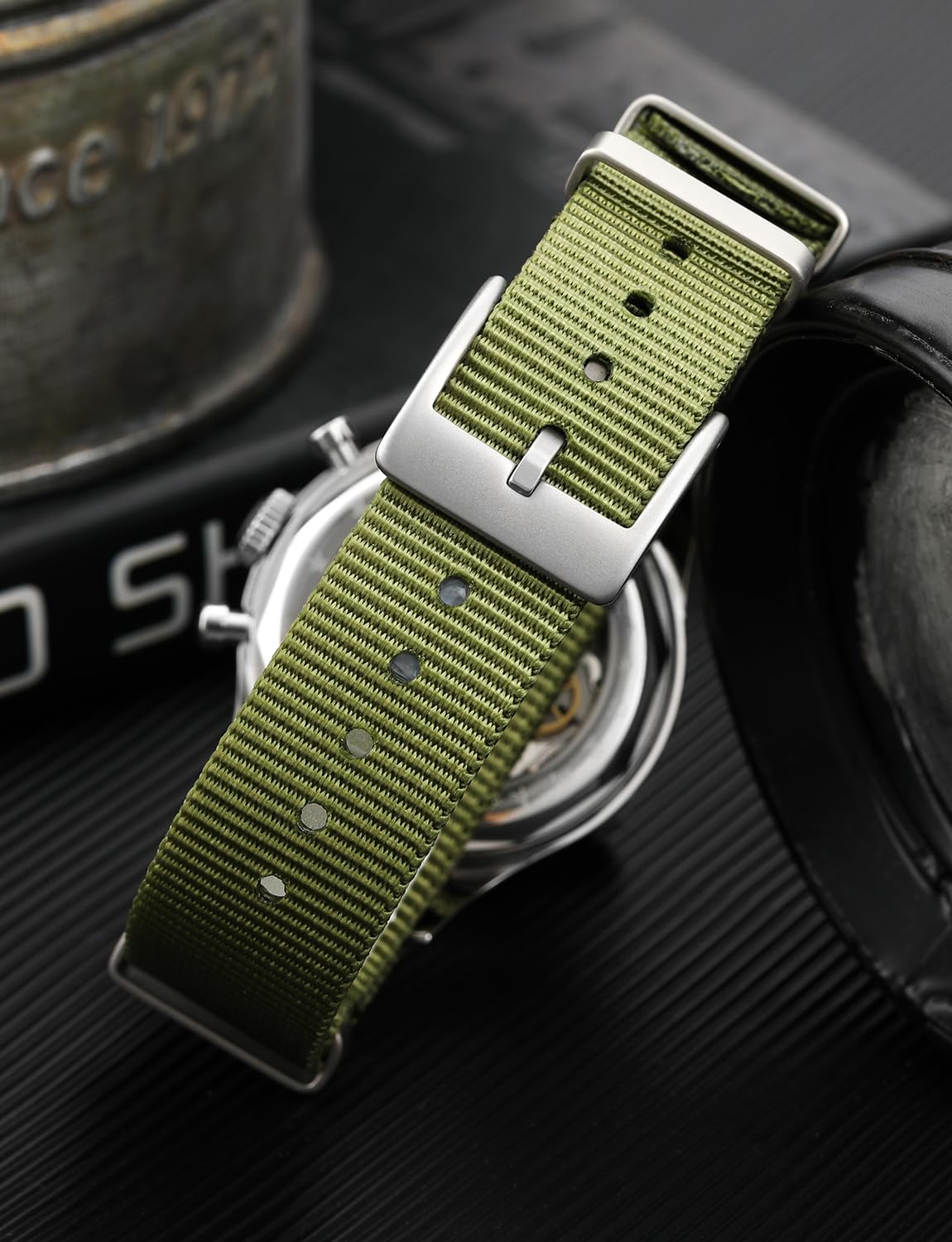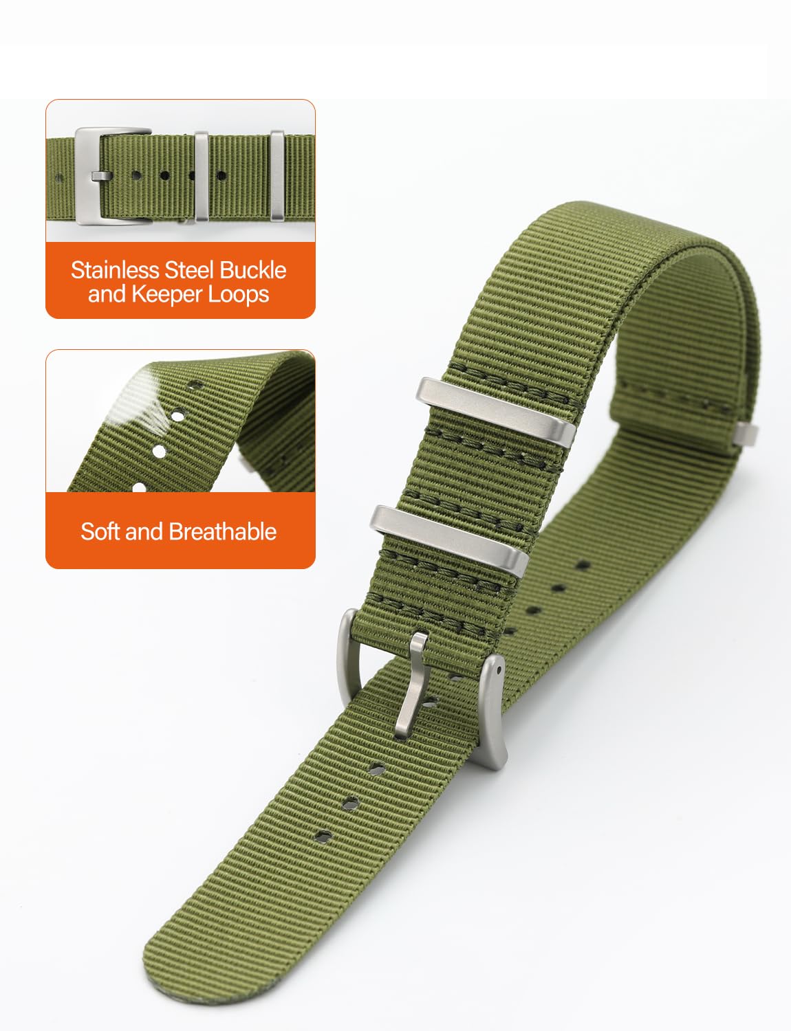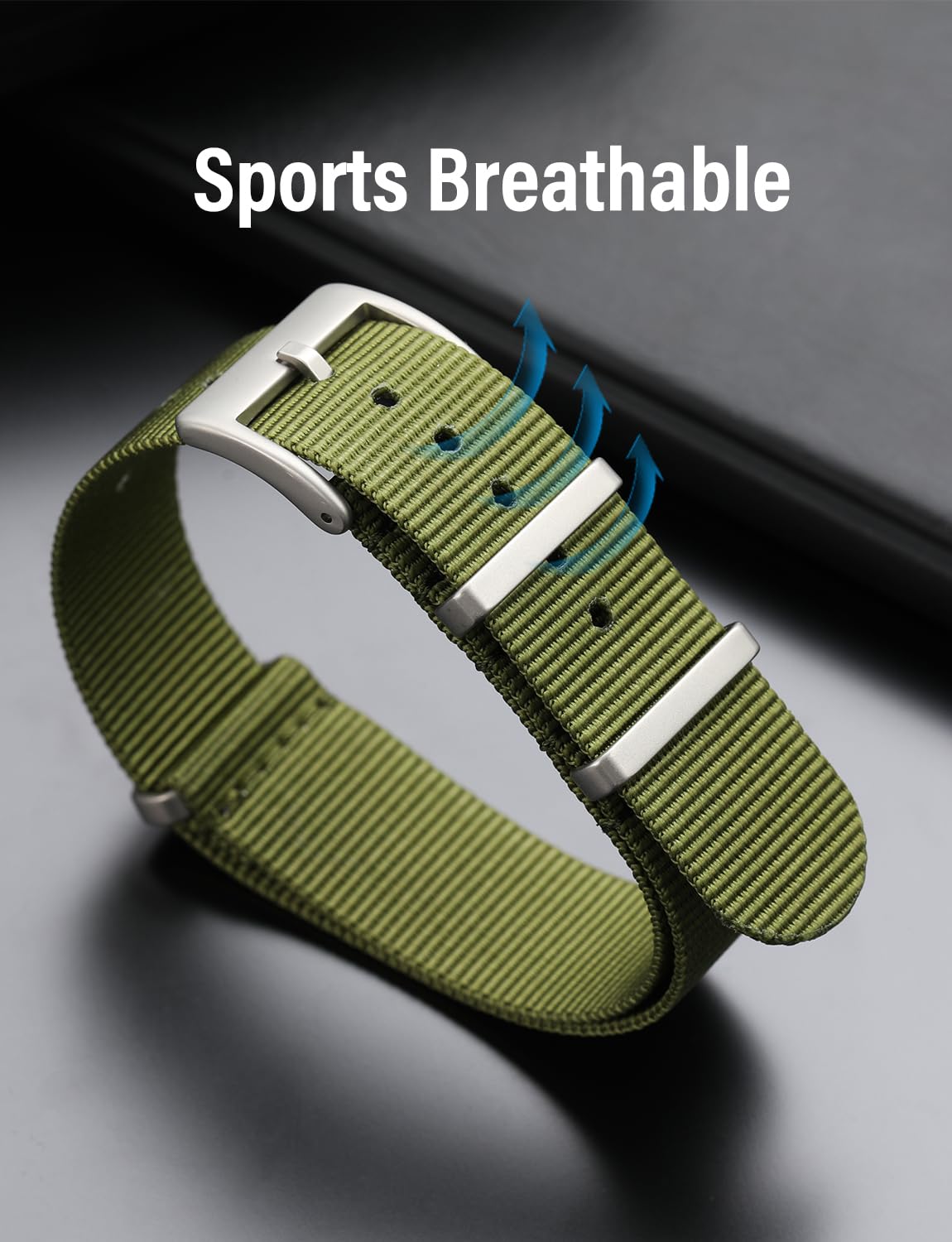 Laser Cut and Durable: Made of high density nylon and 316L stainless steel buckle and keeper loops, the men women's watch band is smooth and durable. Advanced laser heat sealed edges, laser cut holes and neatly stitches make it smooth and friendly to your skin. Nylon strap can be washed repeatly and resist fraying