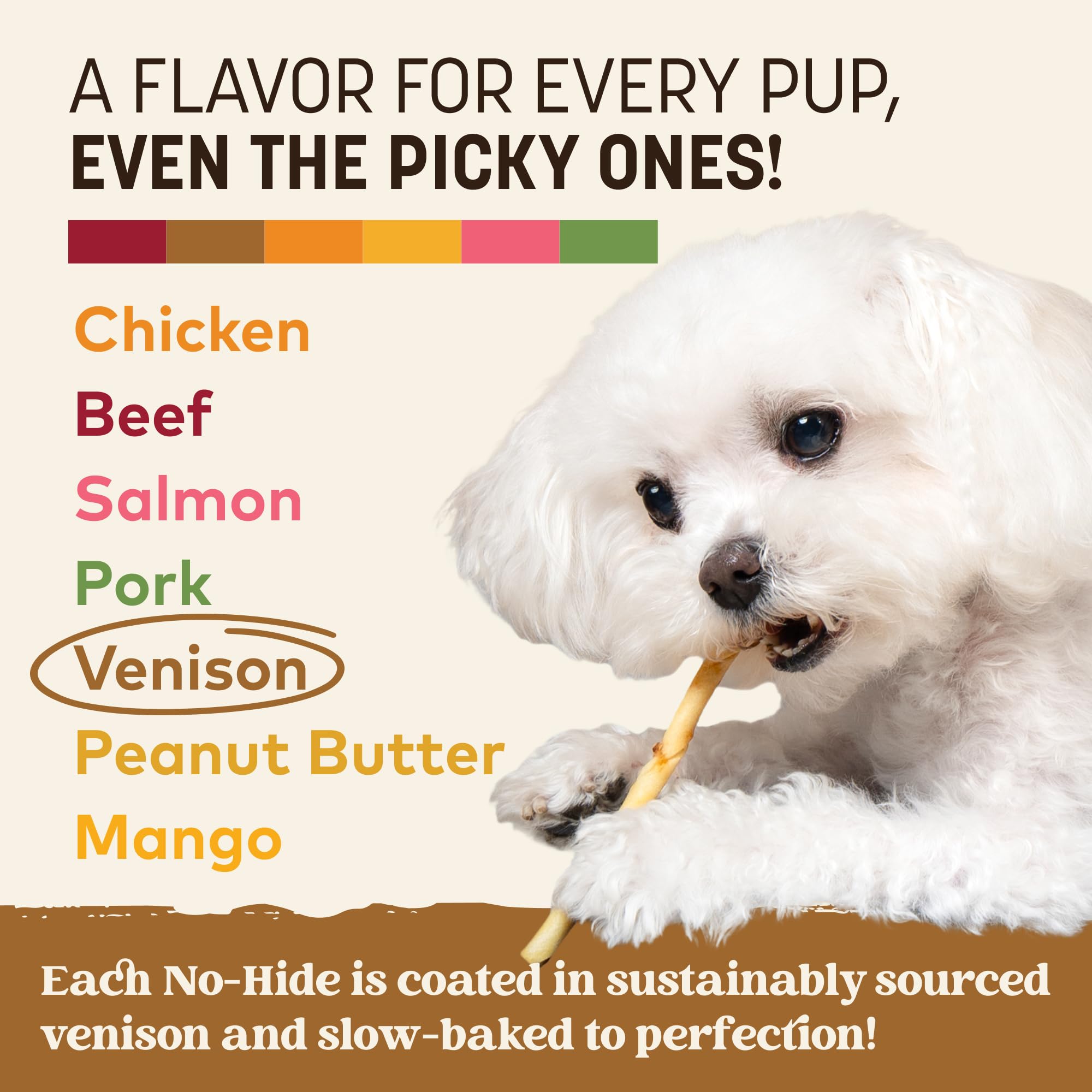 THERE'S NO-THING LIKE IT: No-Hide is the healthy alternative to rawhide & bully sticks. These all natural No-Hide Stix are made with free-range, grass-fed venison and are easily digestible. Great for teeth and gums