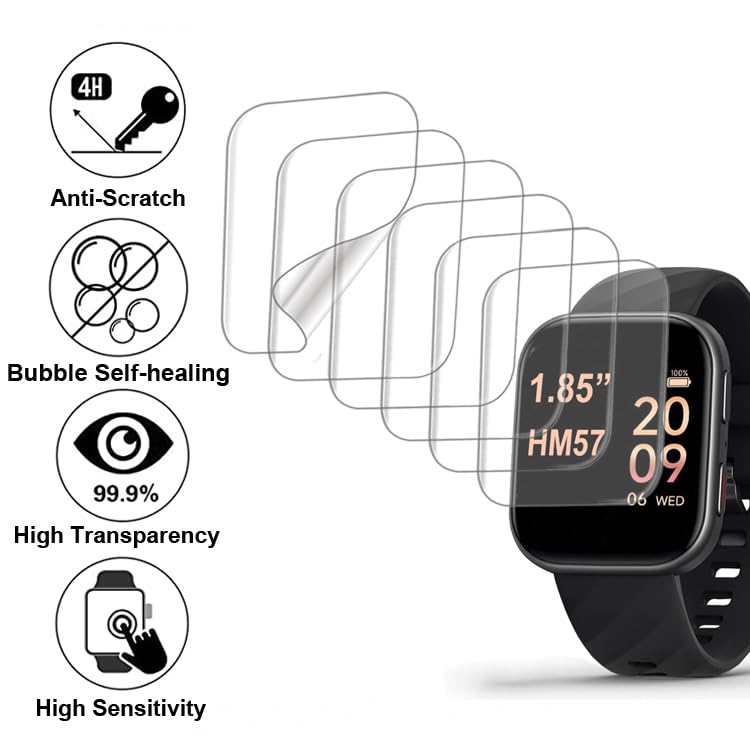 Welcome! HM57 1.85” Smartwatch User. You may need a soft screen protector for HM57 1.85” smart watch, which is Compatible with MorePro FITVII HM57 1.85” Smart Watch. Smart watch HM57 1.85” is good equipment for sports with elegant design and smart function. But when you are doing sports, the watch's screen may be scratched or shattered. You will be unhappy if this nice watch’s screen damaged, so you need a screen protector for your watch. We designed this screen protector SPECIALLY for HM57 1.85” Smartwatch. It will perfectly fit your watch's screen and protect it. (This protector ONLY fits HM57 1.85”) Features: TPU Soft Film, fully cover the screen. Bubble Self-healing: small bubbles disappear automatically in 2 days Scratch-Resistant Anti-shatter High Sensitivity: you can touch the screen and control the watch quickly. High Transparency:you will read the screen clearly through the film. Specification: Color: Transparent Transparency: 99% highly clear Size: for HM57 1.85” smartwatch Package Included 6 x soft screen protectors; 6 x dry and wet wipes; 6 x dust removal stickers; 1 x micro fiber cloth, 1x Squeegee, 1 x Foam Ring Sticker