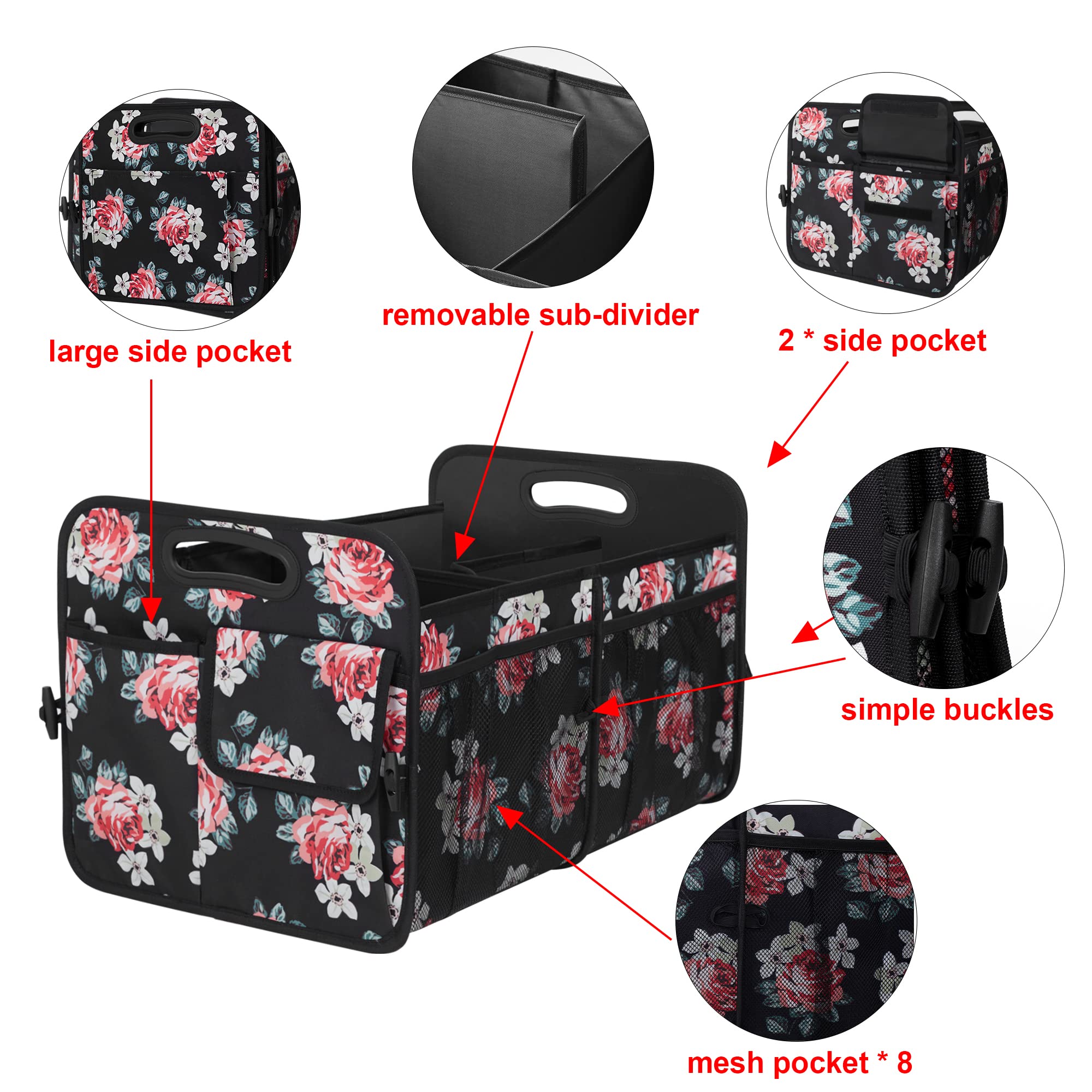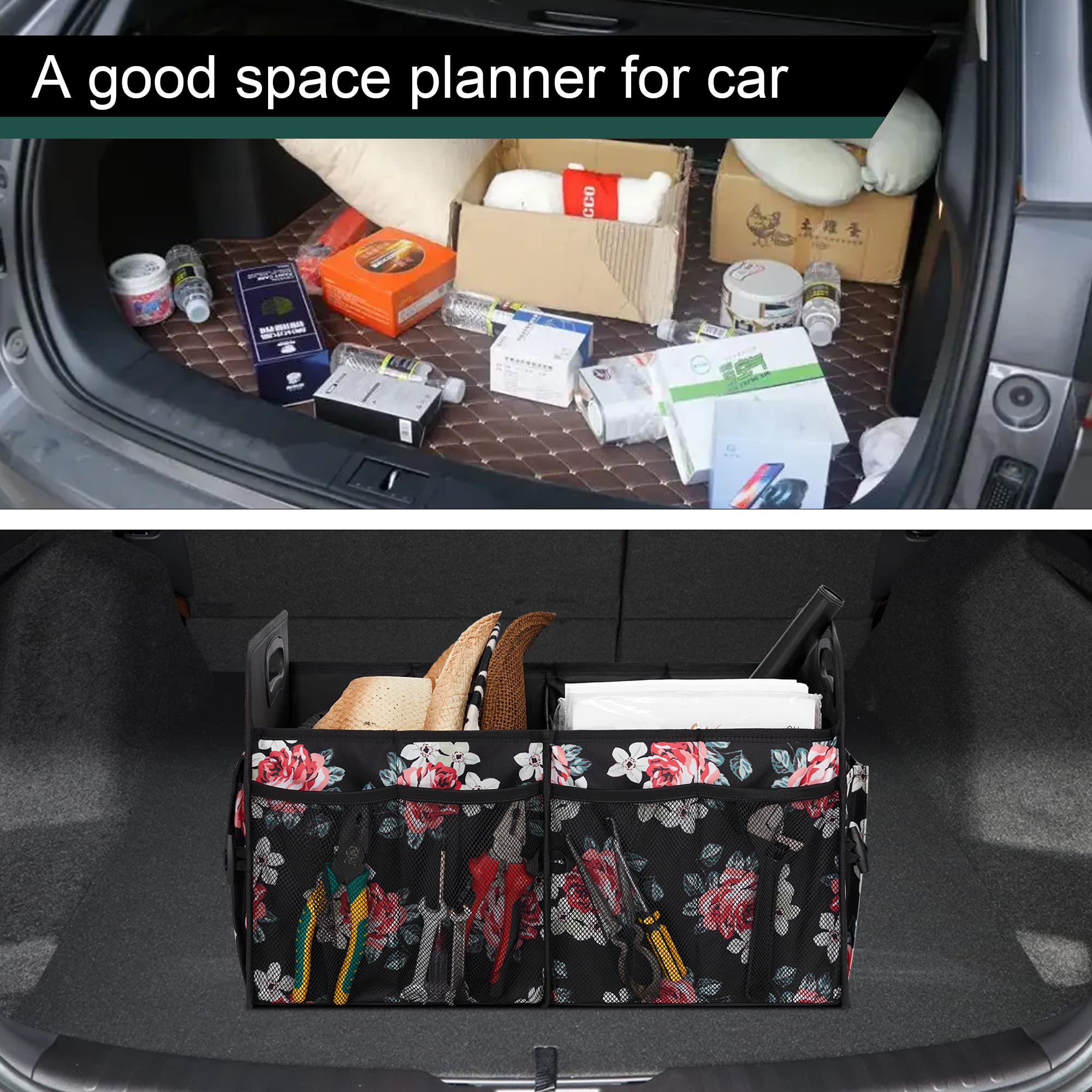 【Collapsible Trunk Storage】:The trunk organizer for suv collapsible multi compartments with removable divider can fold the size that you need in your car interior and fold away when not in use. Foldable and portable.