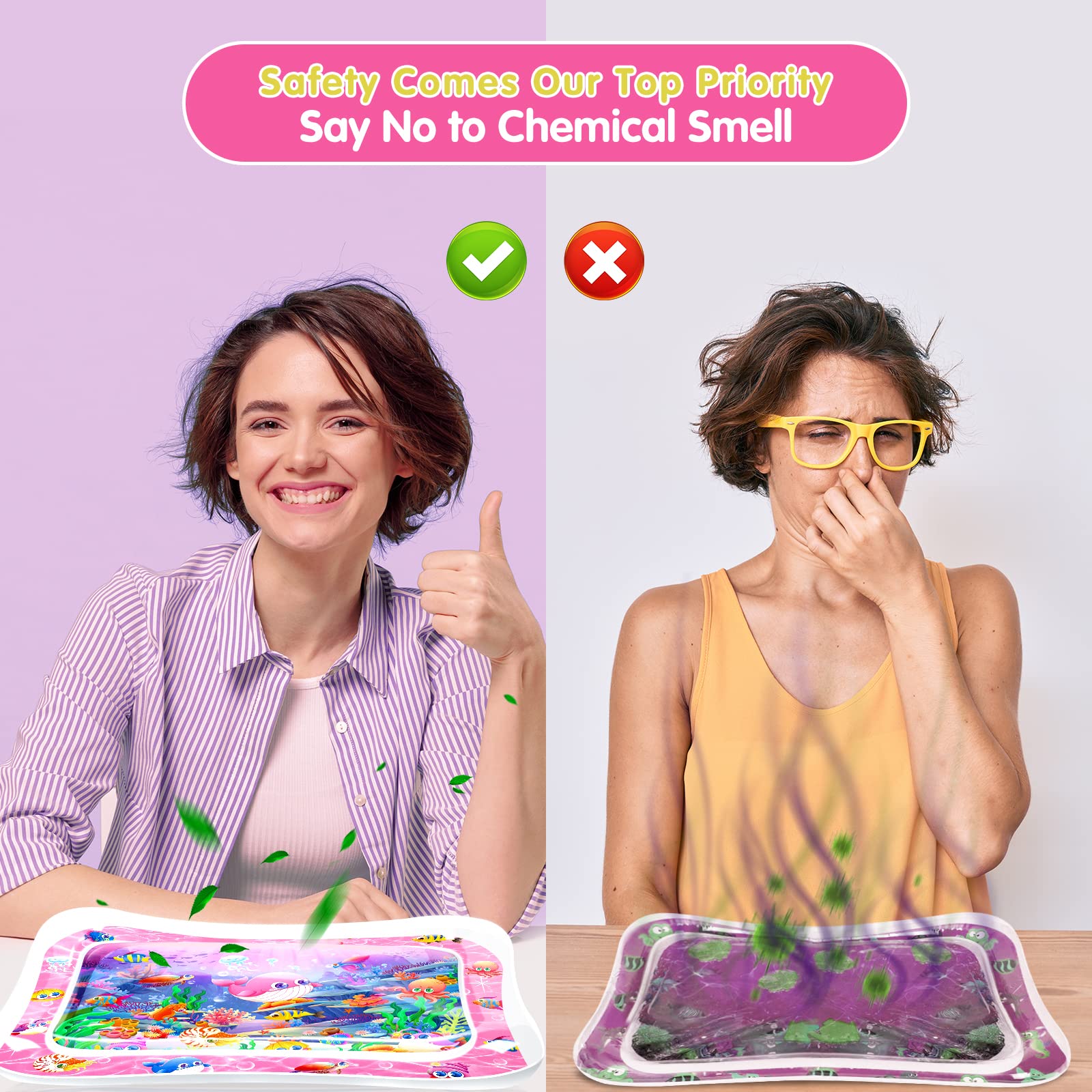 Superior quality and 100% leak-proof: Our baby water mats are made from durable, 100% BPA-free and non-toxic, heavy PVC materials. Each of our game mats has been rigorously tested. It is durable and waterproof, so it doesn't wet your baby's body.