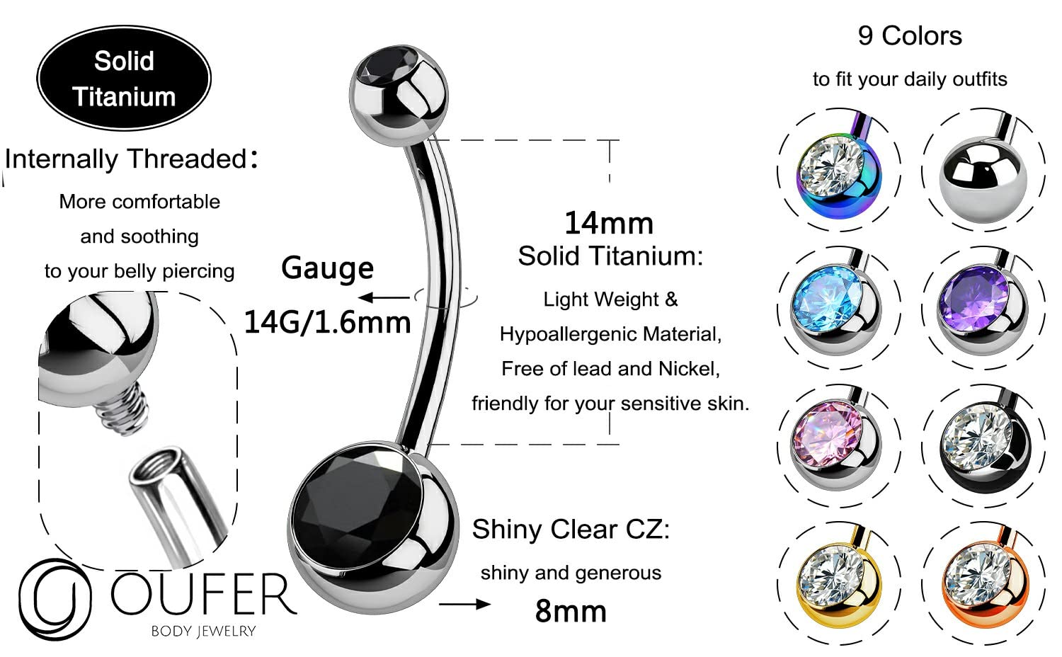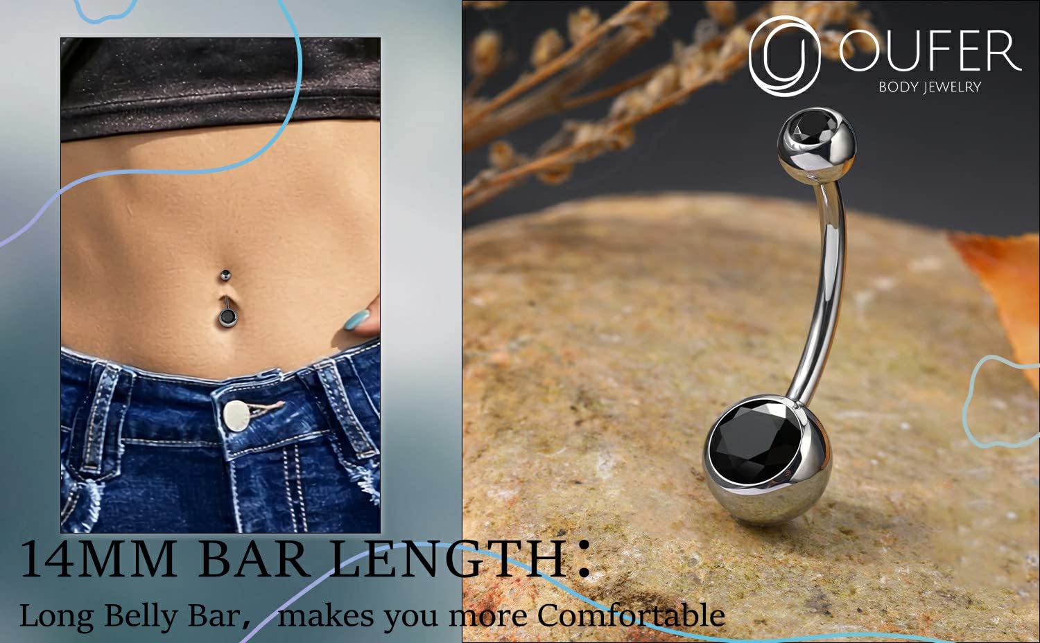 ❤NO irritations❤: G23 Titanium Belly Piercing Jewelry, Hypoallergenic, Nickel & Lead-Free, Can Be Worn Even on New Piercings, Good for the Sensitive Skin, Long Use Time