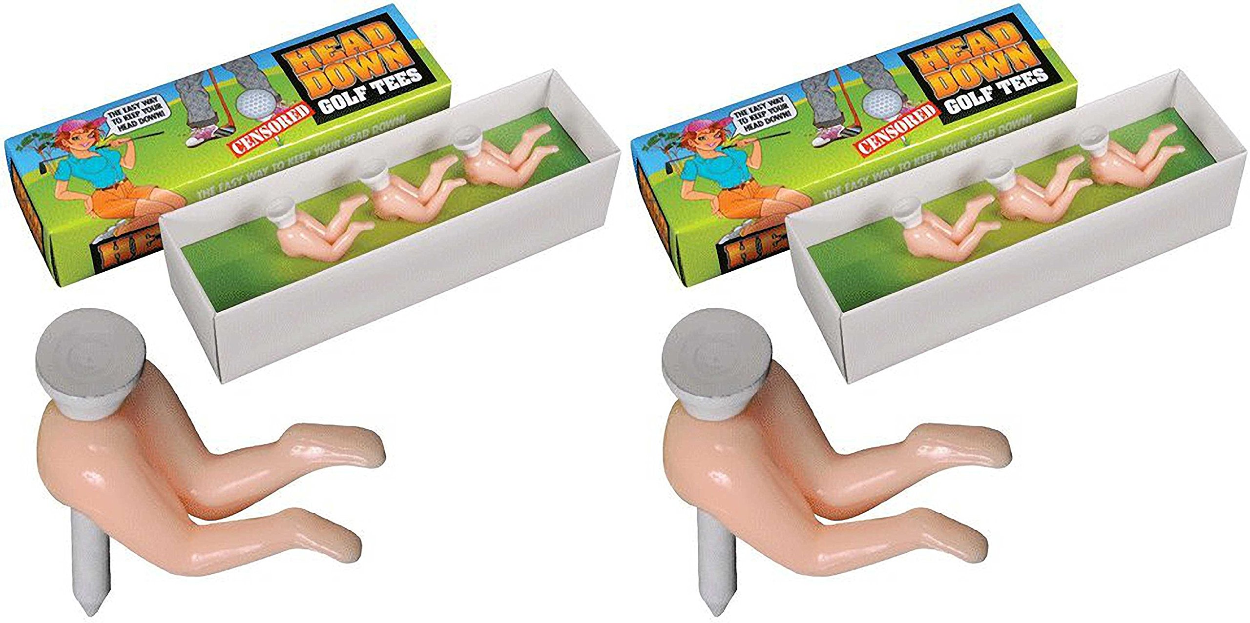 These funny novelty golf tees are shaped like a naked lady and made from durable plastic. At 3 inches tall, they offer a consistent tee height every time thanks to the unique double-leg design that stops insertion consistenly at the same point. Great for golfers who want a laugh on the course or need a golf gag gift. Friends will get a kick of these bachelor party favors. Fantastic adult-themed golf accessory. Add some humor to your next round with these unique and collectible golf tees.