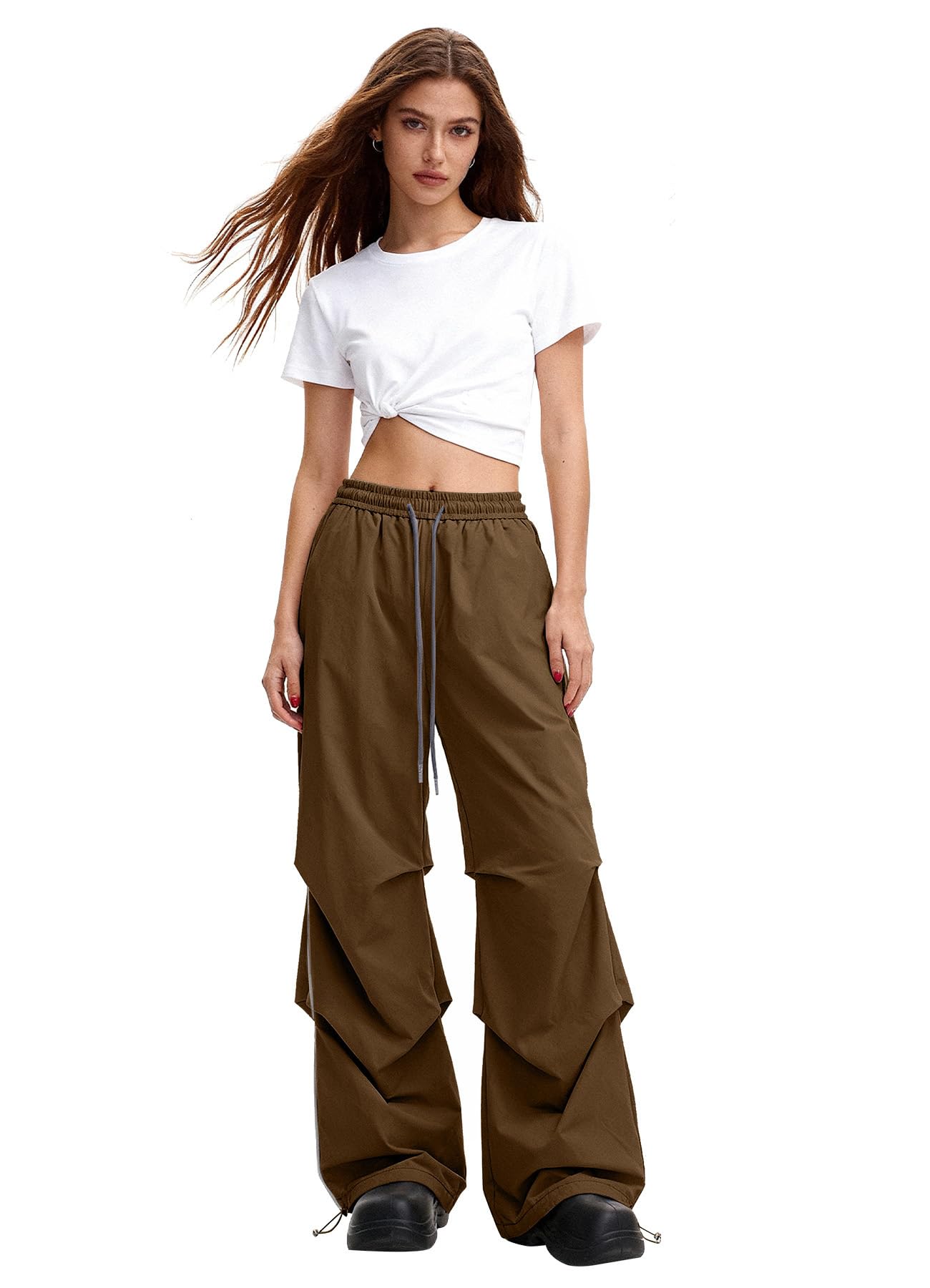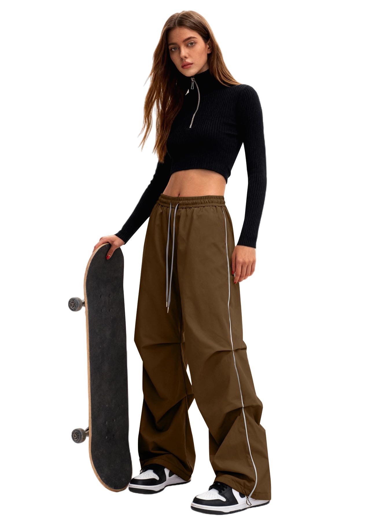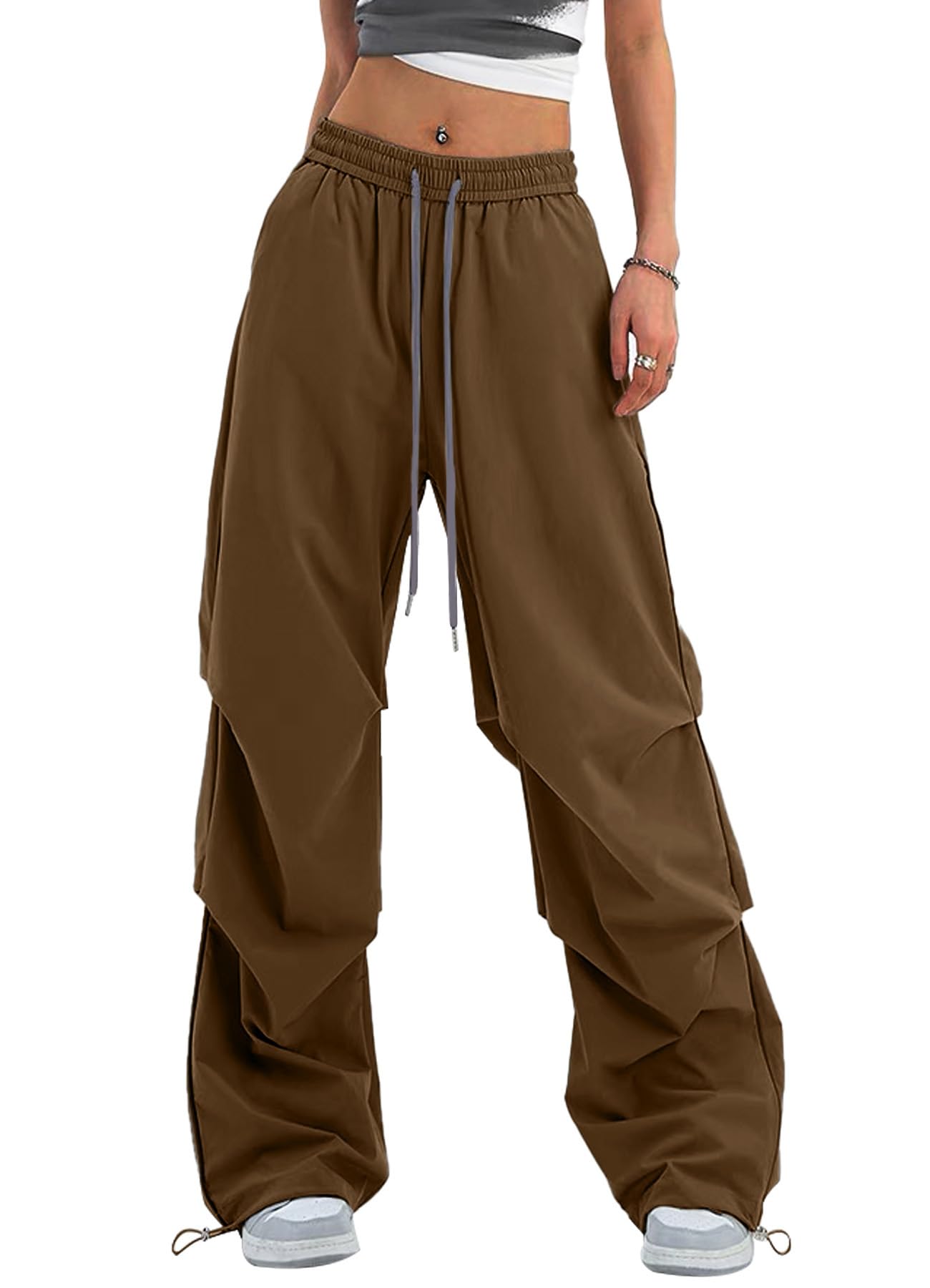 High Waist Y2K Baggy Parachute Pants: Designed with a high waist and a Y2K-inspired baggy parachute silhouette, these wide leg pants create a balanced, relaxed fit that complements different body types and delivers a modern streetwear look.