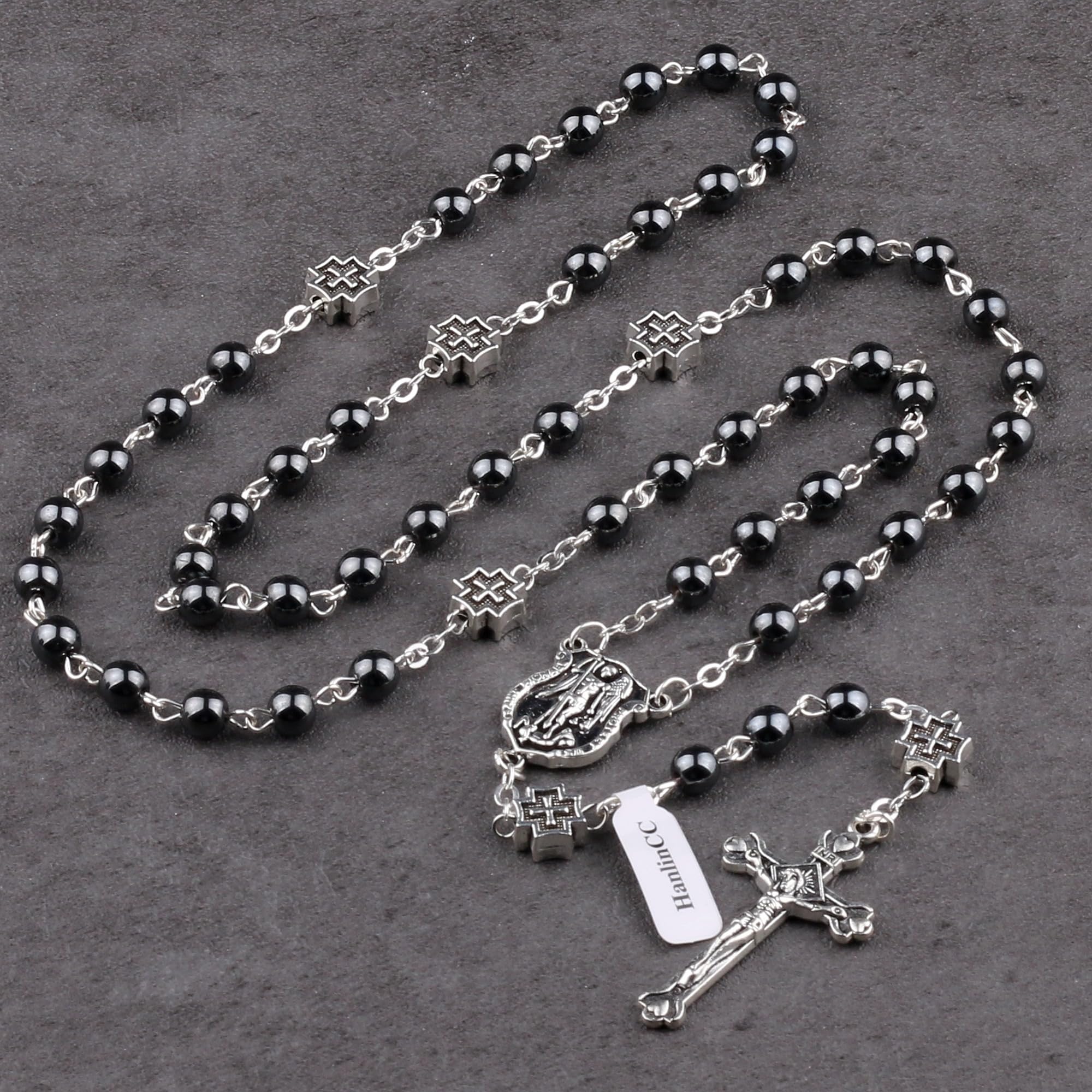 Hematite Stone Saint Michael rosary Hail Mary beads size is 6mm, our father beads are 10mm Cross Metal beads with Anti-Silver plated, it is make us can pray with your eyes closed and know you have reached the end of a decade and can meditate on the next Mystery of the rosary.