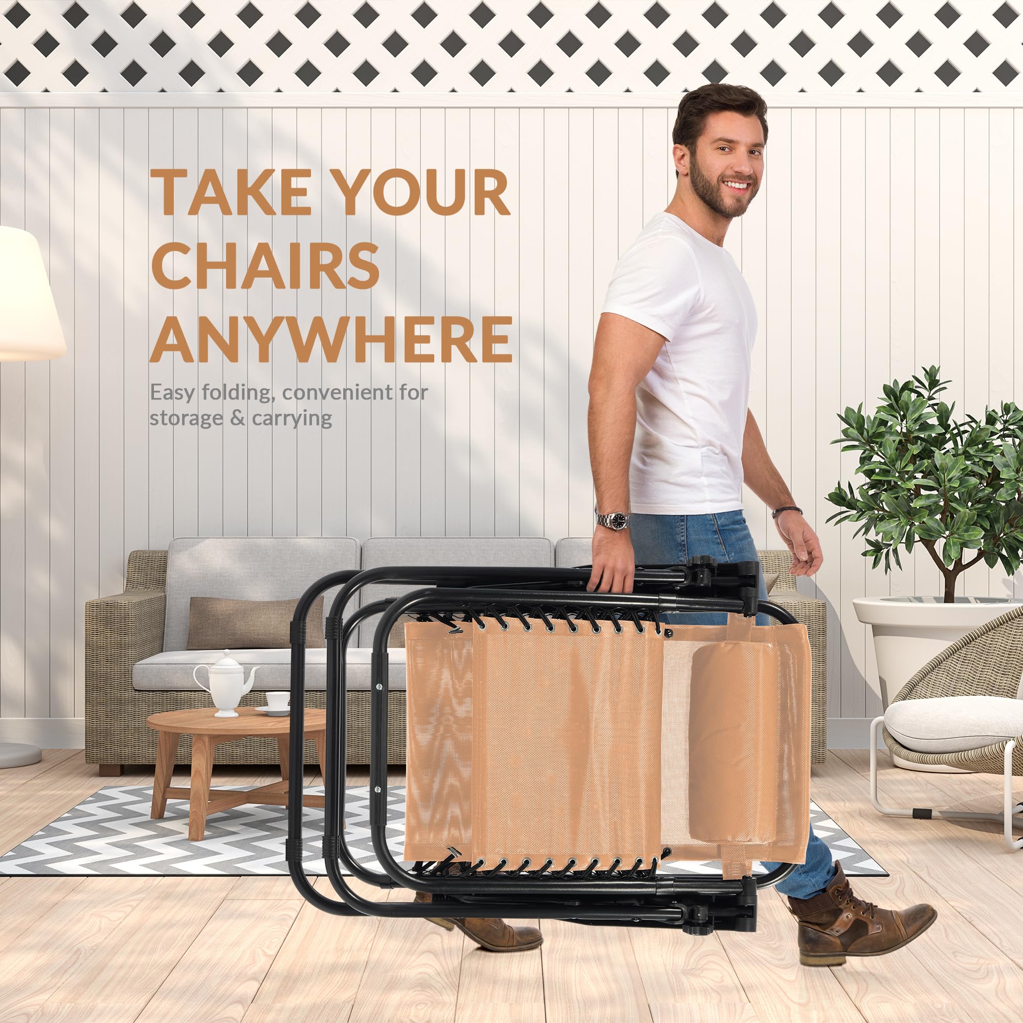 Versatile Usage: Whether you’re relaxing by the pool, enjoying a camping trip, or hosting a backyard barbecue, our folding chairs adapts to any setting. The modern design enhances your outdoor decor, making it a stylish addition to your space. With built-in cup holders, you can keep your favorite drinks at hand, ensuring you stay refreshed while you lounge. Versatile enough to serve as outside furniture or indoor furniture, it’s perfect for gatherings with friends and family