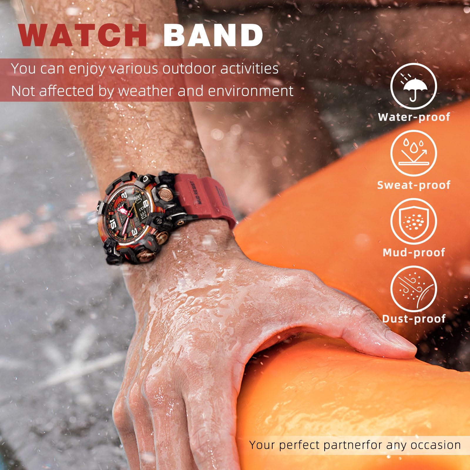 If you truly care about your Casio watch - We have selected high-quality elastic resin material. This material is soft, yet resilient, ensuring comfort during wear, and lightweight. Additionally, the watch band boasts excellent waterproof performance, able to withstand exposure to water and moisture, making it ideal for water sports or everyday encounters with liquids. Our bands conform to the curves of your wrist, providing an outstanding wearing experience.