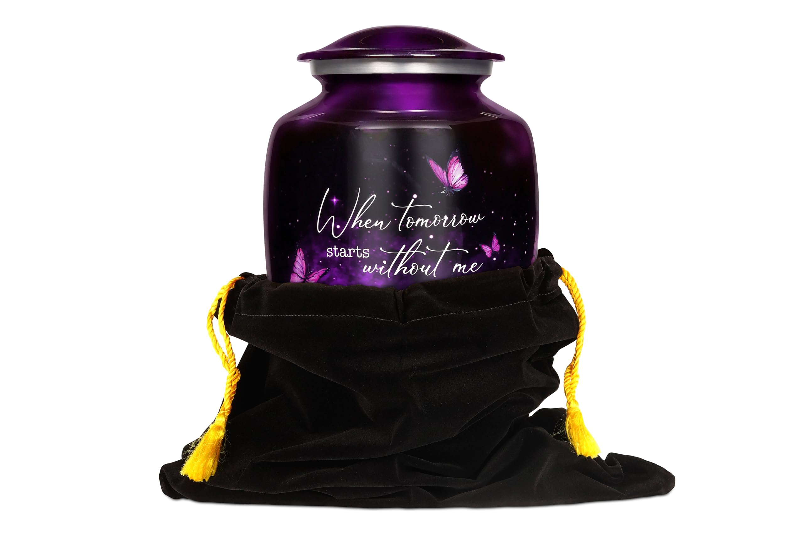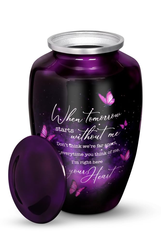 【ELEGANT BUTTERFLY DESIGN】 This butterfly urn for ashes for women symbolizes transformation and eternal love. Its detailed butterfly artwork and rich purple color make it a meaningful tribute to your loved one.