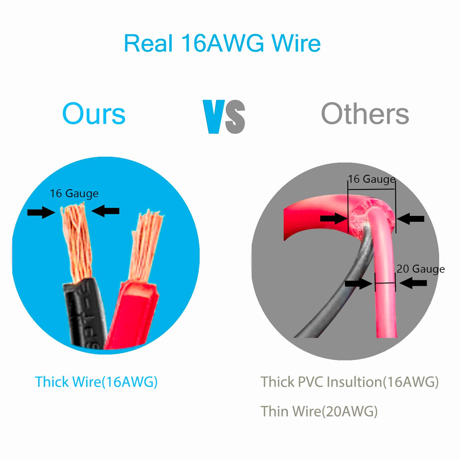 Heavy Duty & UL Wire: Features 12 ft of heavy-duty 16 AWG wire made of 100% 1.31mm² pure copper, offering superior durability and optimal electrical conductivity.
