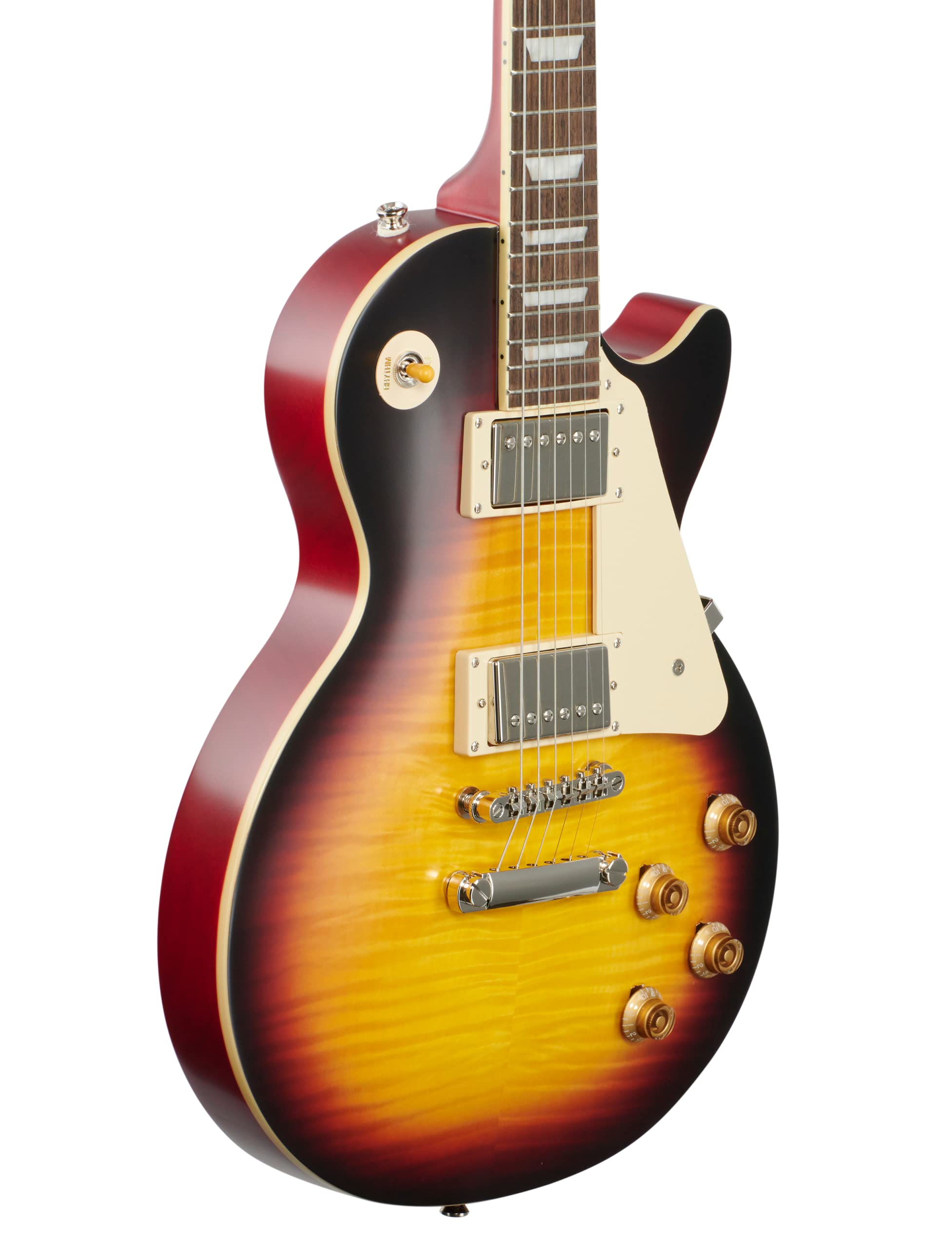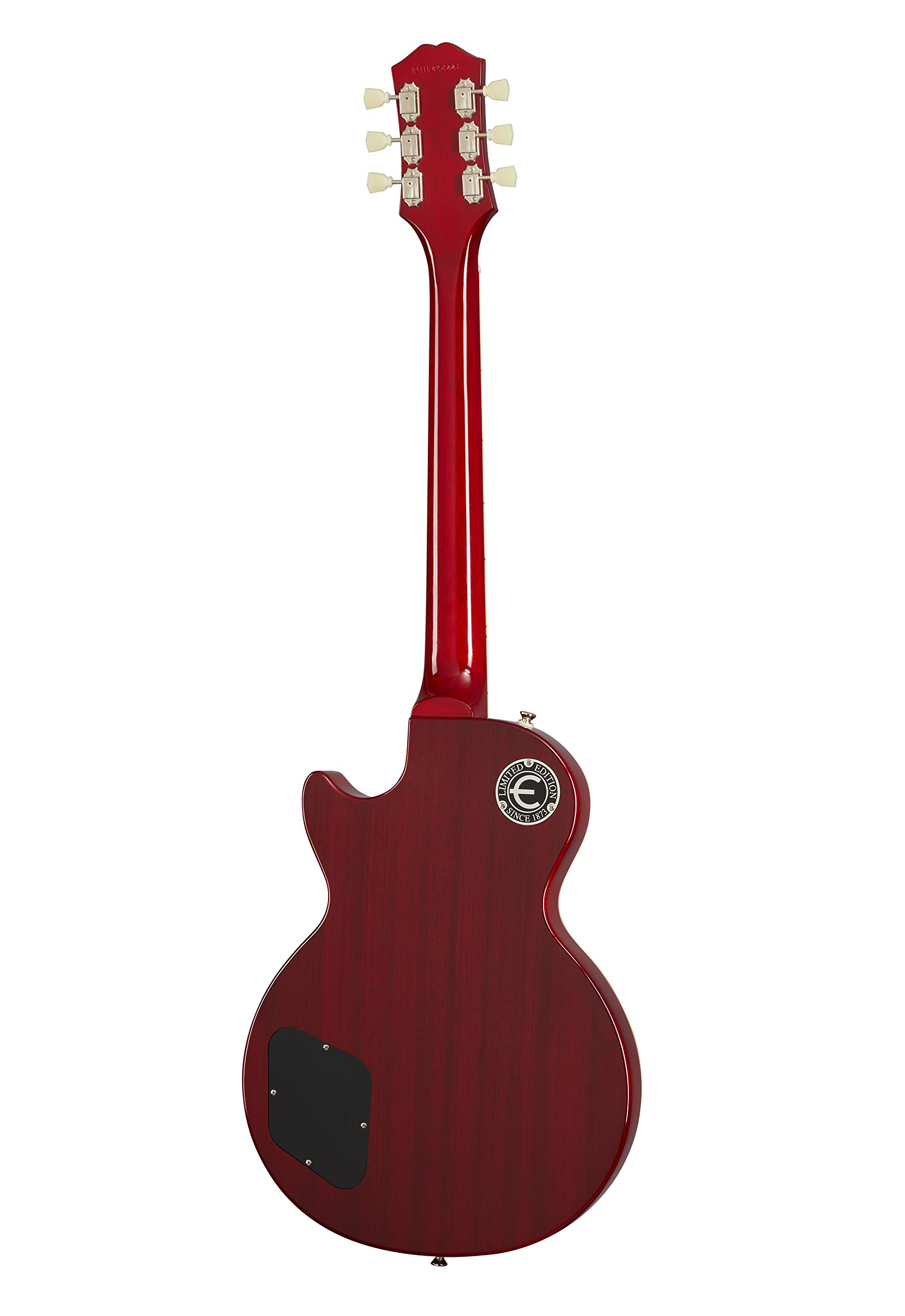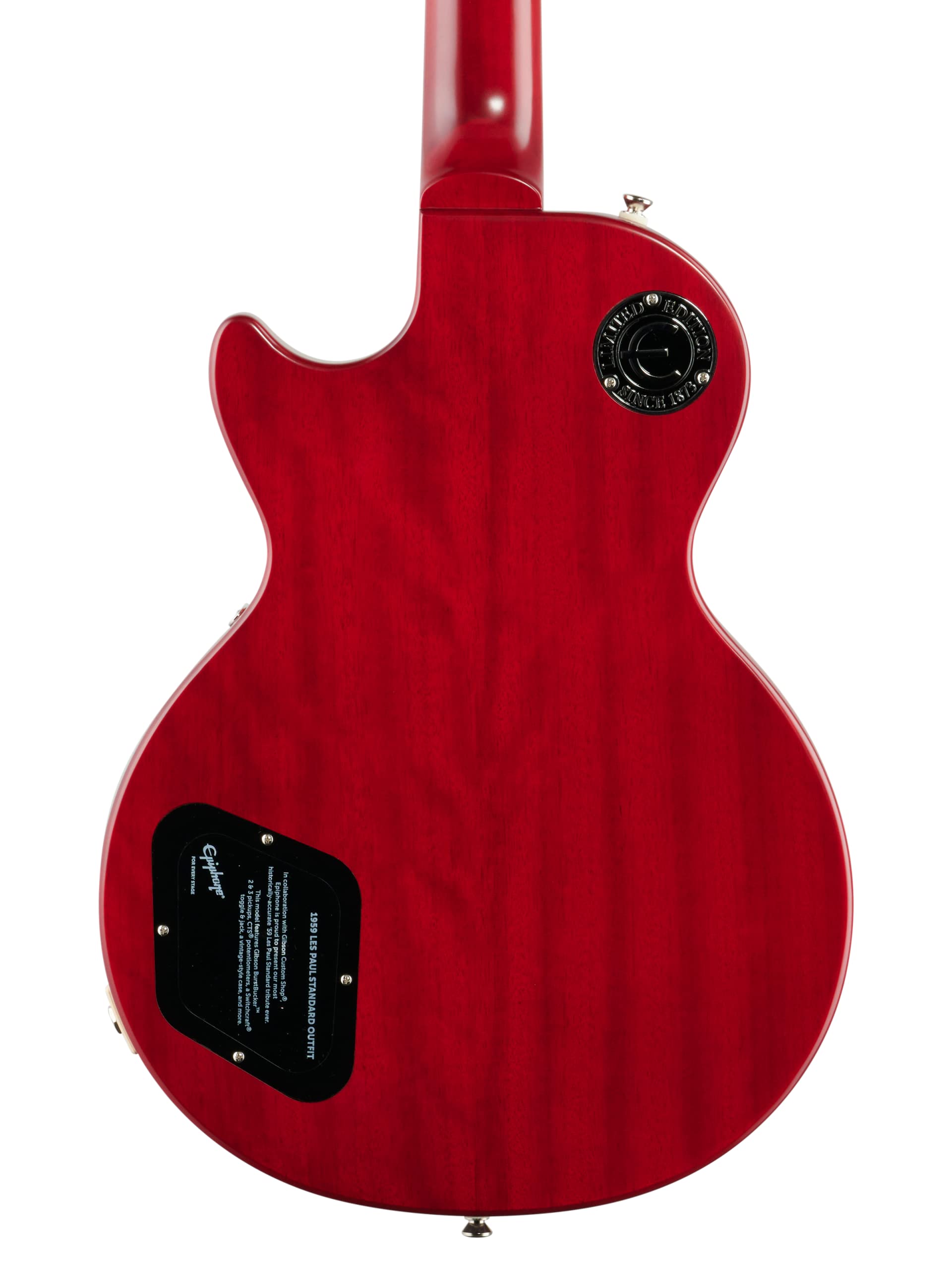 Made in partnership with the Gibson Custom Shop, the Limited Edition 1959 Les Paul Standard is Epiphone's stunning recreation of the rare vintage classic. Featuring a mahogany body with a maple top with a AAA figured maple veneer, comfortable 1959 hand-rolled neck profile with long neck tenon, aged finish, Gibson USA BurstBucker 2 & 3 humbucking pickups, Switchcraft selector switch and output jack, CTS pots, 50s era wiring, Mallory capacitors, non-beveled pickguard, new Epiphone Deluxe vintage tuners, and a vintage-style brown hard case. It also comes with an Epiphone Limited Edition metal medallion toggle switchplate. Available in Aged Dark Burst and Aged Dark Cherry Burst.